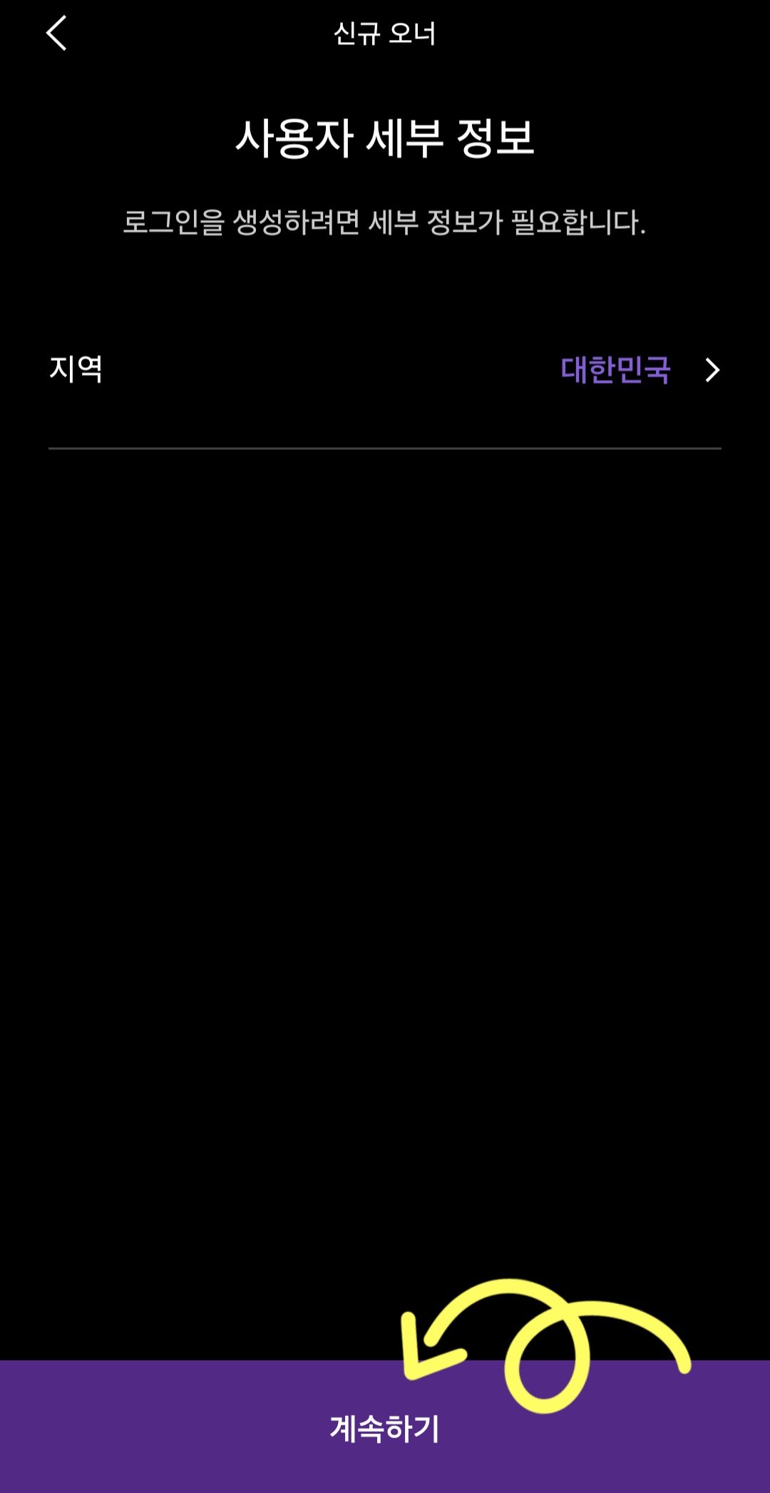 ▼그다음 지역을 대한민국으로 바꾼 후 계속하기를 클릭, 간단한 약관 동의 후 계속을 클릭해 주세요.