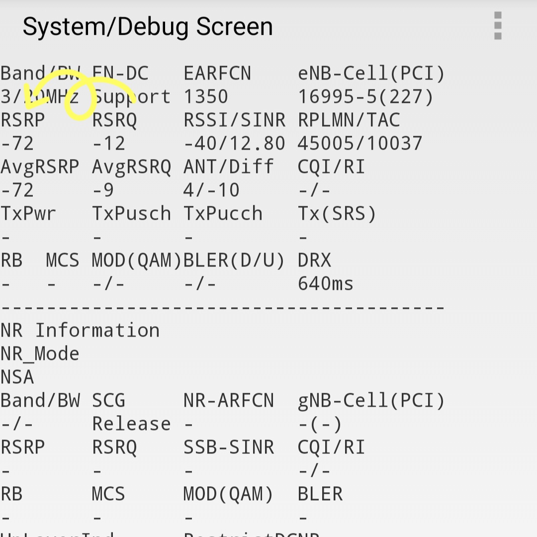 ▼그럼 System/Debug Screen 화면으로 전환되는데요. 다른건 안보셔도 되고 현재 통화품질(수신감도)을 확인하기 위해선 "RSRP" 숫자만 확인해 주시면 됩니다. 밑에 수치를 적어 두었으니 수치를 통해 현재 좋고 나쁨을 확인해 보시길 바랍니다.