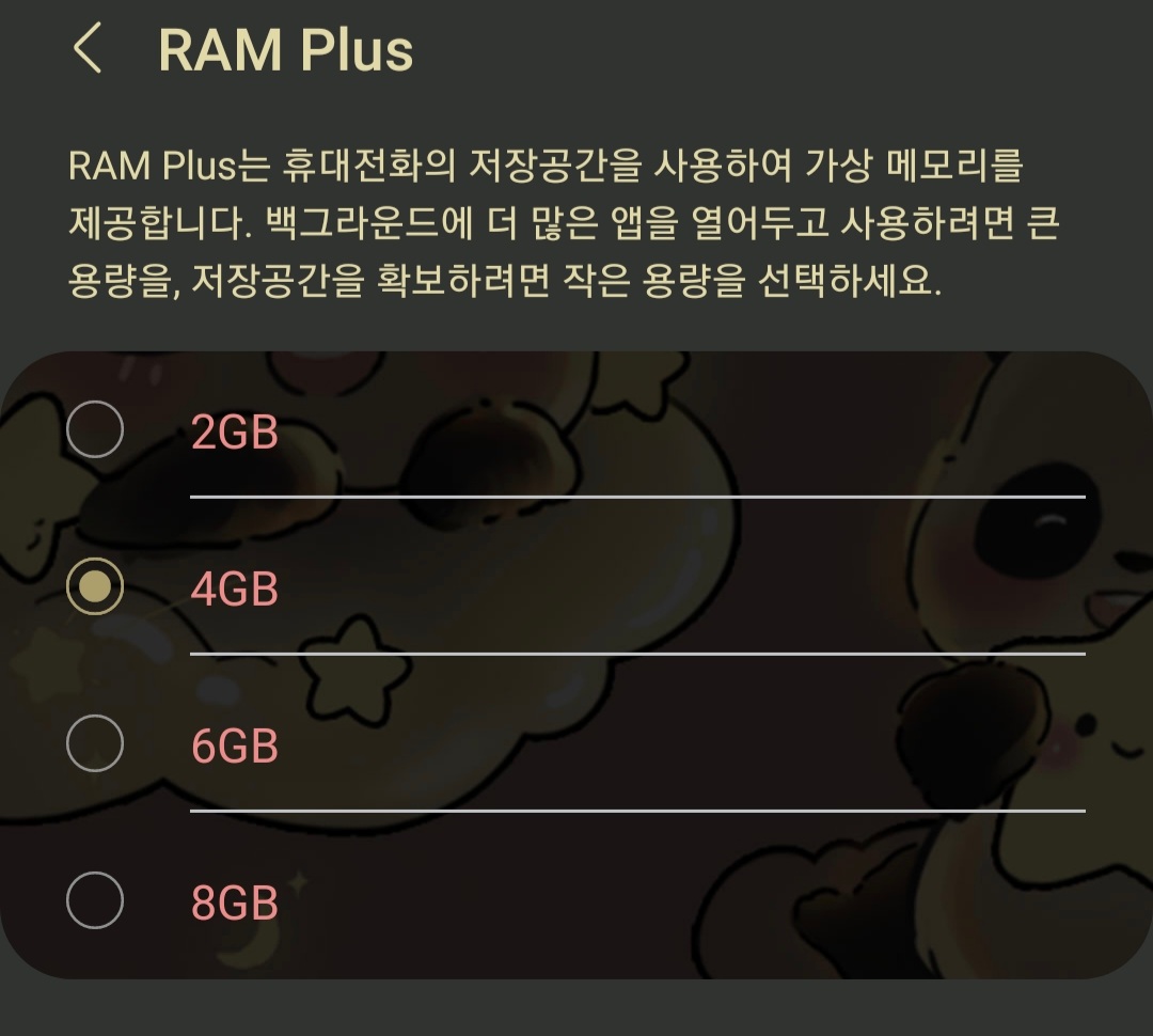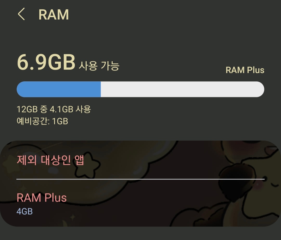 그럼 "RAM Plus"란으로 넘어가지고 램 관련해서 설정할 수가 있습니다. 우선 "RAM Plus"를 클릭해보겠습니다.