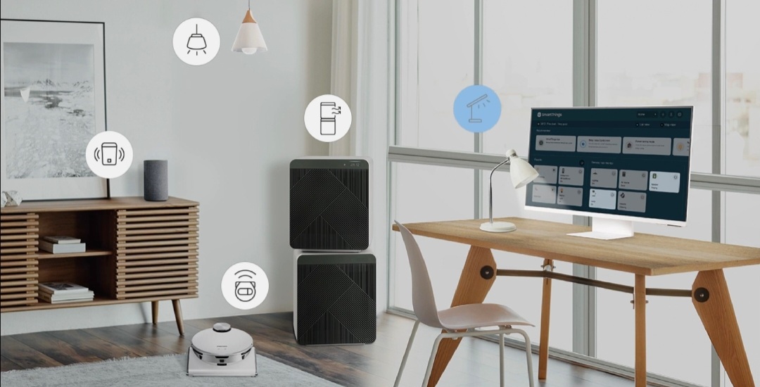 이 기능은 우선 스마트폰으로 집에 있는 삼성가전제품을 스마트 싱스 앱에 등록을 하면 스마트 모니터 M8가 IoT 허브 역할을 해줘 집 안에 있는 가전제품을 한눈에 확인하고 제어할 수도 있습니다.