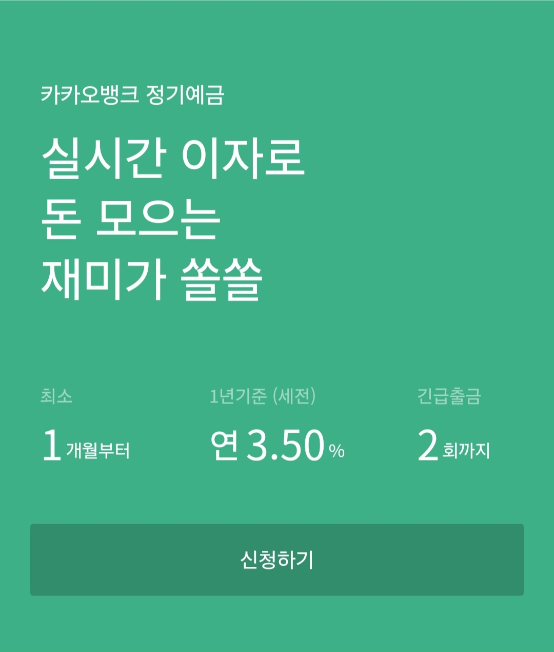 몇 개월 뒤에 써야 하는 목돈을 조금이나마 안전하게 굴리기 위해 카카오뱅크 정기예금에 가입해 보았습니다.