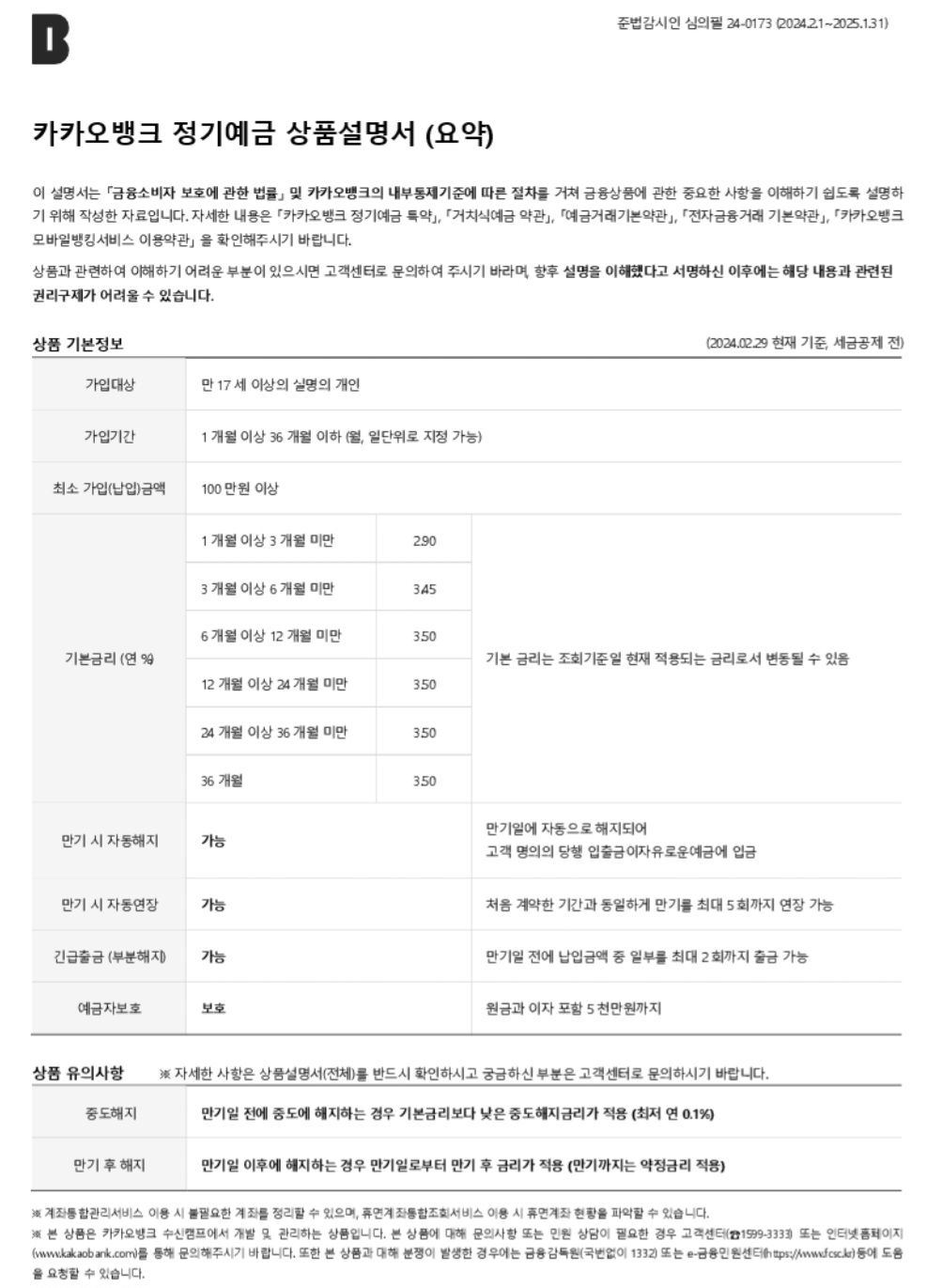 몇 개월 뒤에 써야 하는 목돈을 조금이나마 안전하게 굴리기 위해 카카오뱅크 정기예금에 가입해 보았습니다.