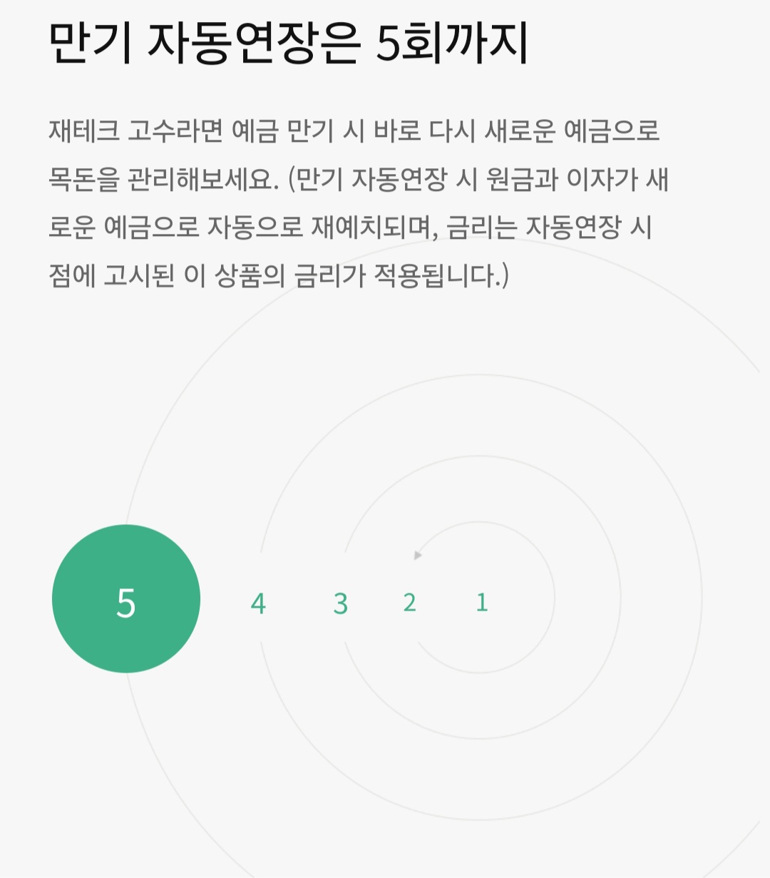 ▼세 번째로 제일 재미있는 게 생각하는 기능으로 실시간으로 이자가 쌓이는 걸 확인할 수 있다는 점과 네 번째로 급할 땐 전체해지 없이 긴급출금 2회를 지원해 준다는 점. 마지막으로 만기 자동연장은 최대 5회까지 연장할 수 있다는 점입니다.
