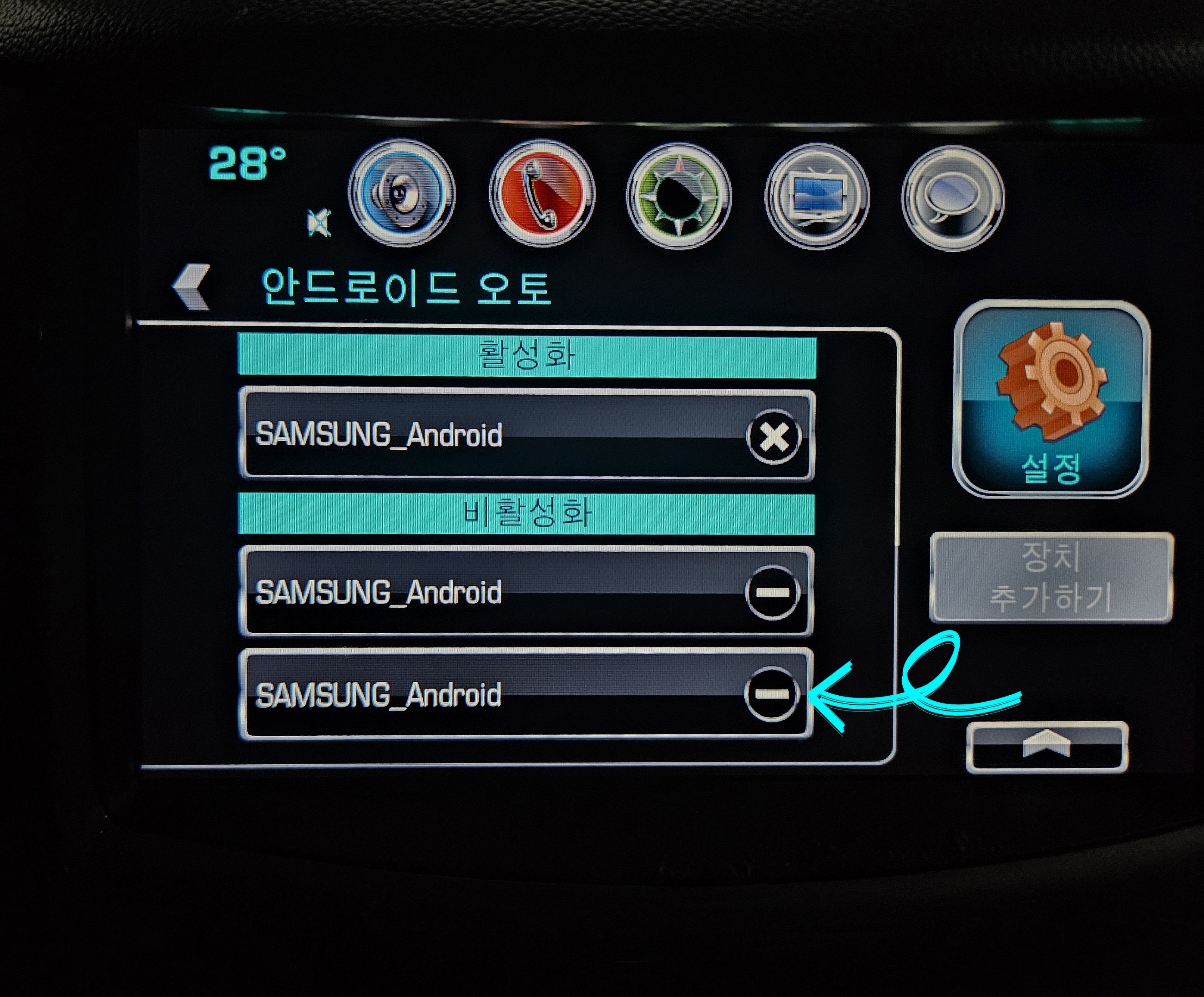 ▼그다음으로 [비활성화]되어 있는 것들 모두 [마이너스 모양을 클릭해 다 삭제]해 주세요. 그다음 핸드폰을 다시 케이블에 연결 후 [장치 추가하기]를 클릭해주기만 하면 끝!!