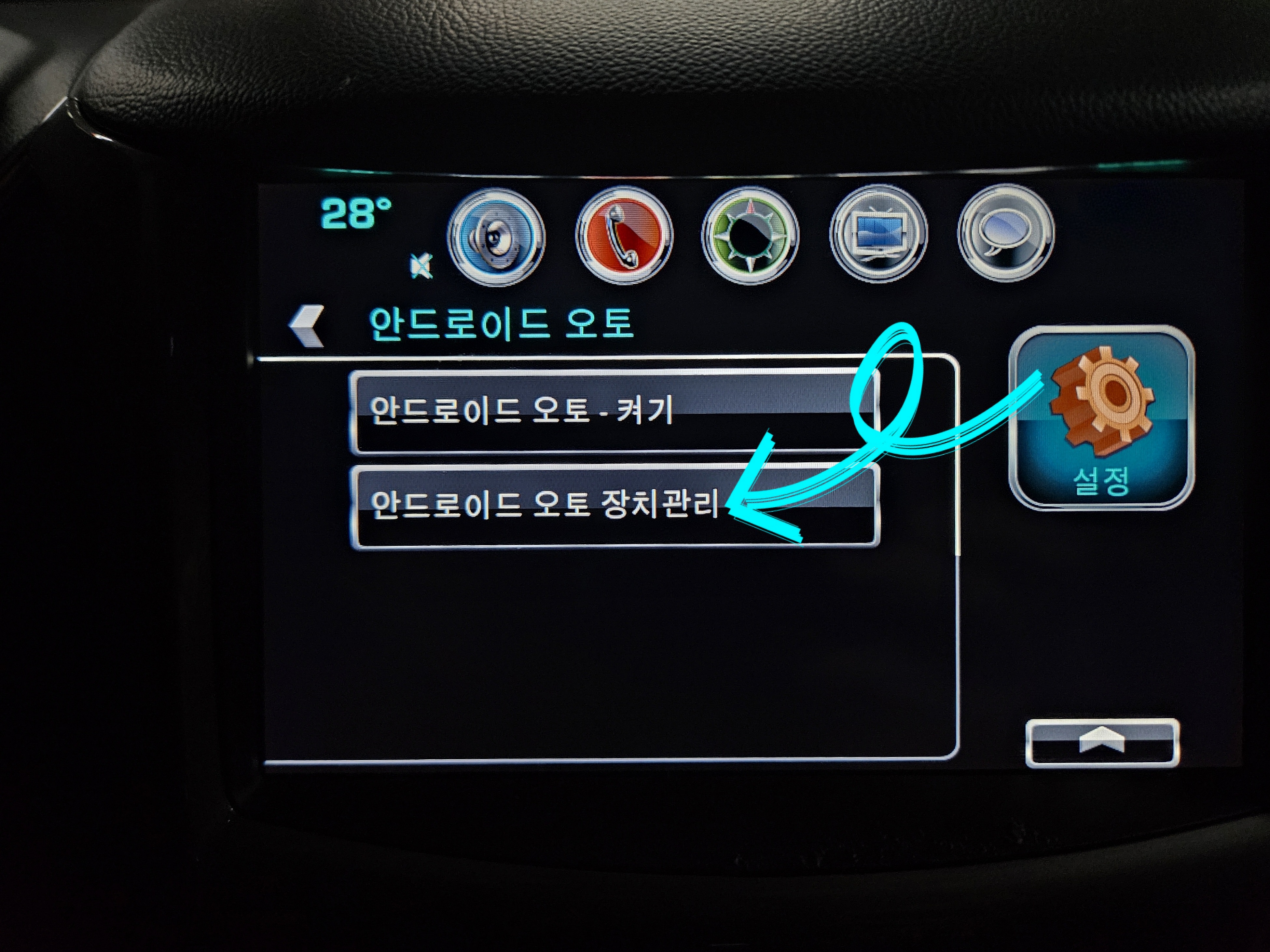 ▼우선 [설정]을 클릭 후 [안드로이드 오토]란을 찾아 클릭해주세요. 그다음 [안드로이드 오토 장치 관리]를 클릭해 주시면 되는데요.