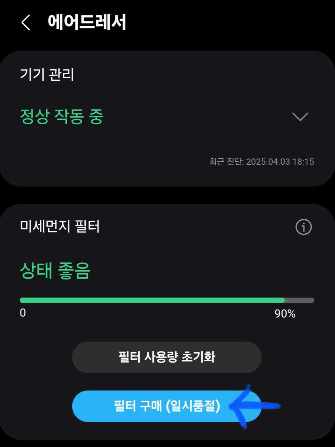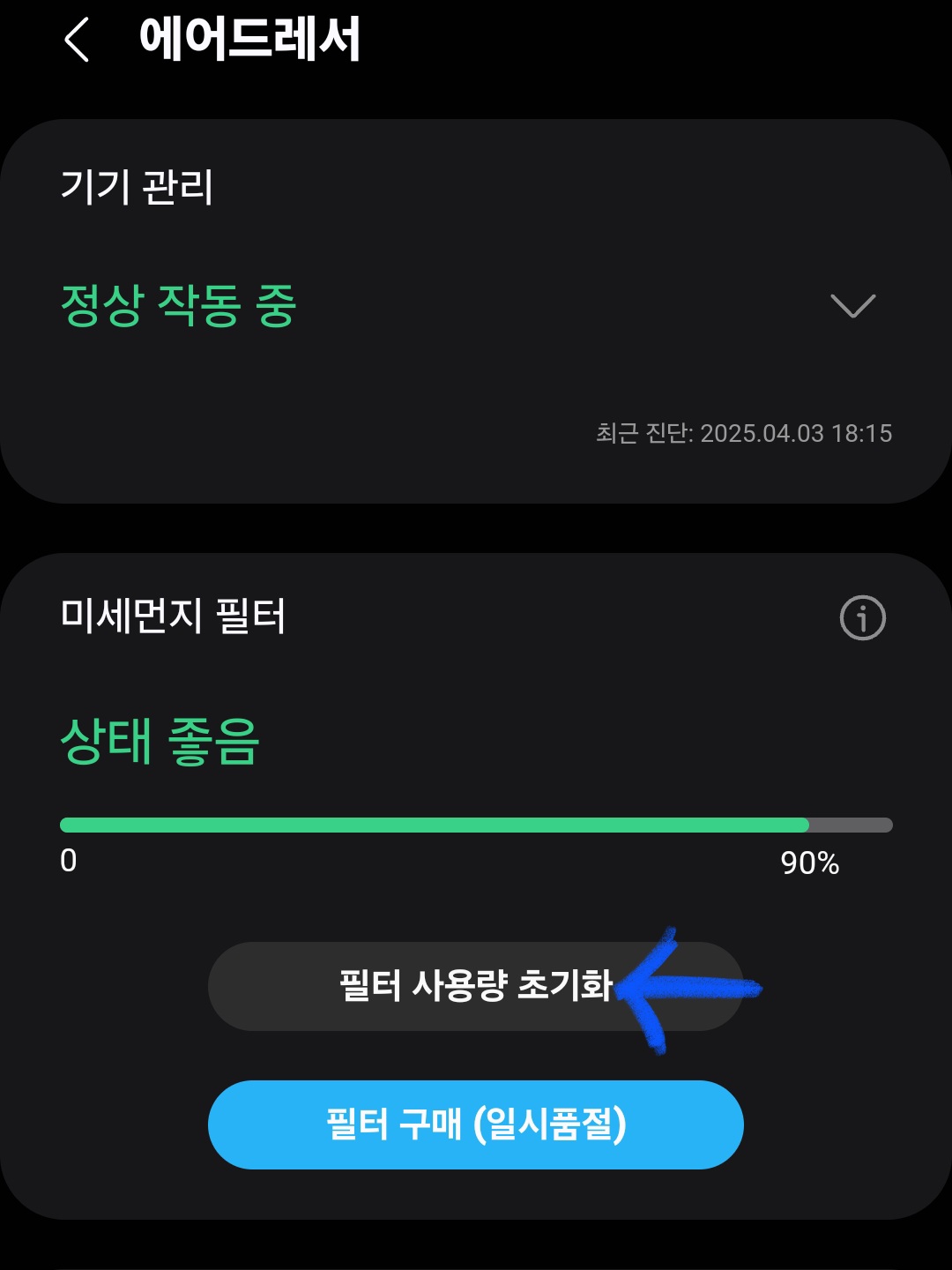 스마트싱스로 필터초기화