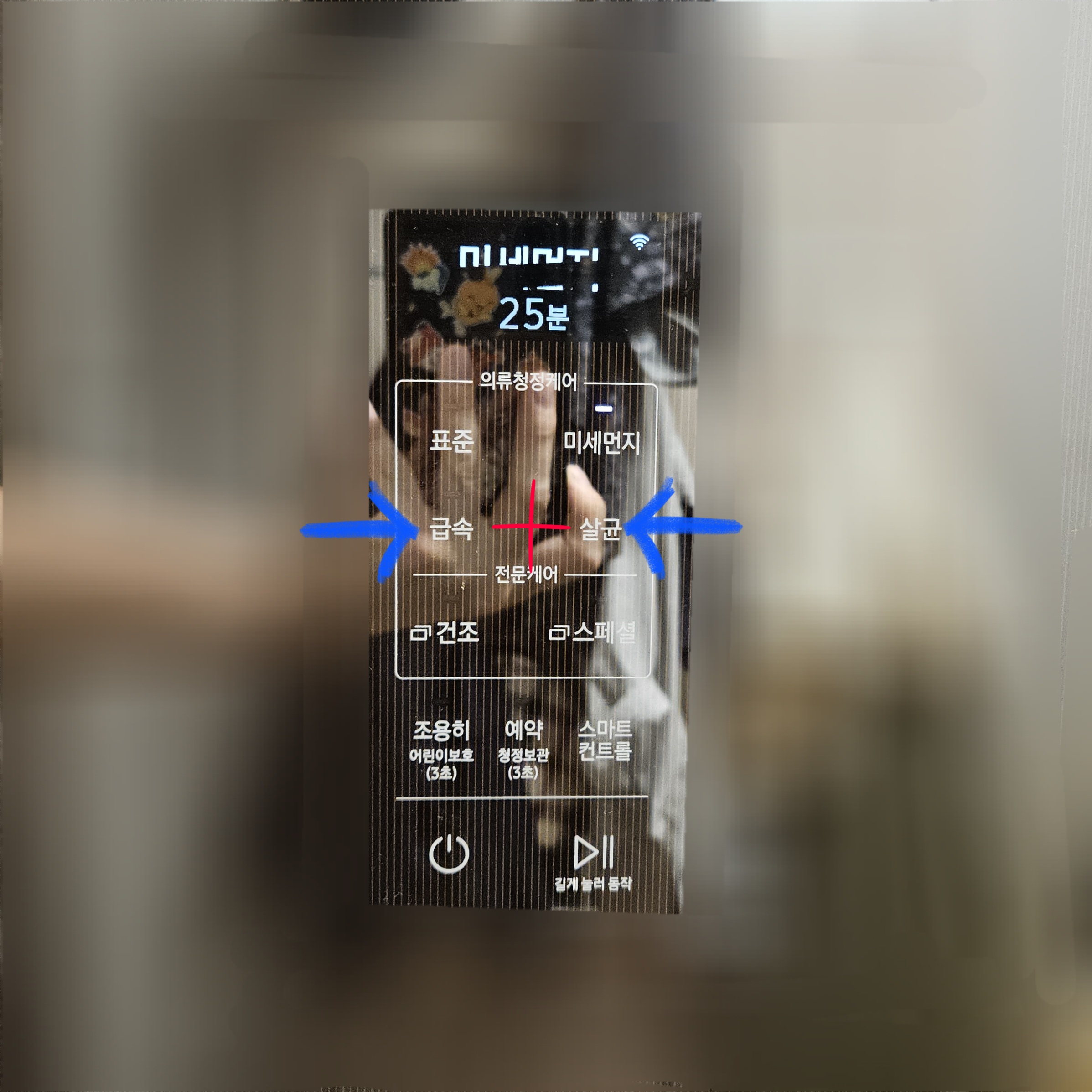 ▼마지막으로 필터교체 초기화만 해주면 되는데요. 필터교체 초기화 버튼은 급속+살균버튼을 동시에 누르고 있으면 됩니다.