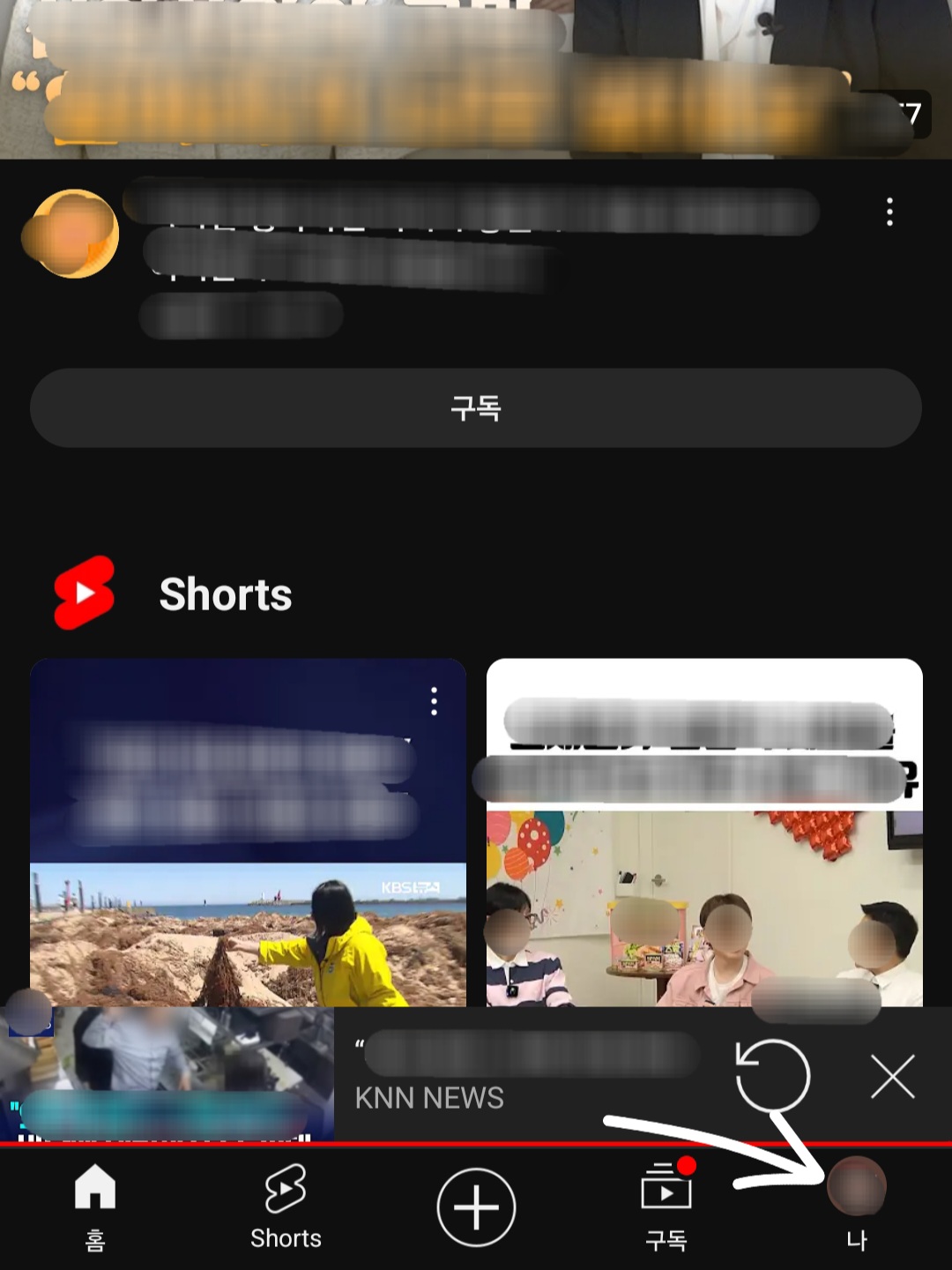 ▼우선 핸드폰으로 유튜브를 실행한 다음 하단 맨 오른쪽에 있는 "나"를 클릭해 줍니다.