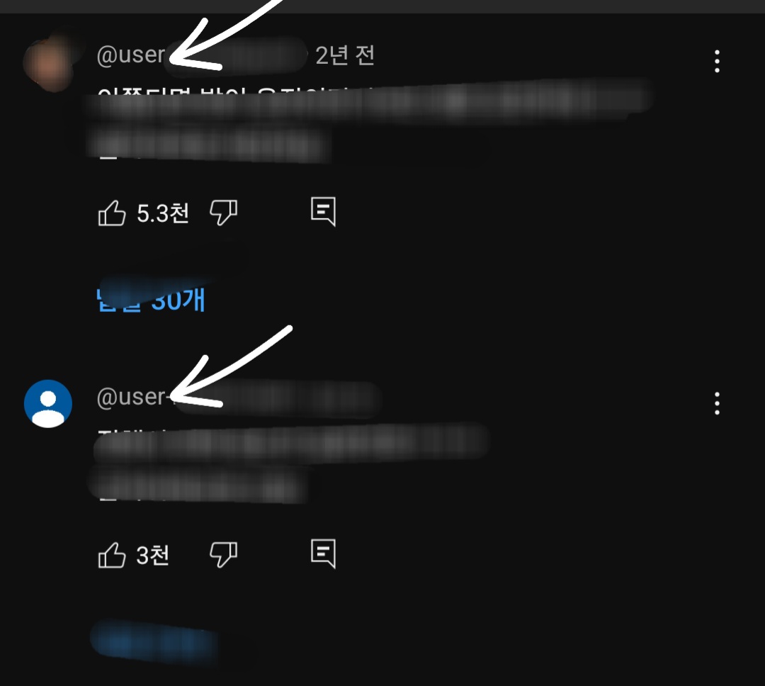 ▼유튜브 댓글을 달 때 설정하지도 않았던 "user-"로 시작하는 아이디를 드디어 바꿀 수 있게 되었다고 하는데요. 댓글 아이디를 바꾸고 싶은 분들은 이렇게 따라 해주세요.