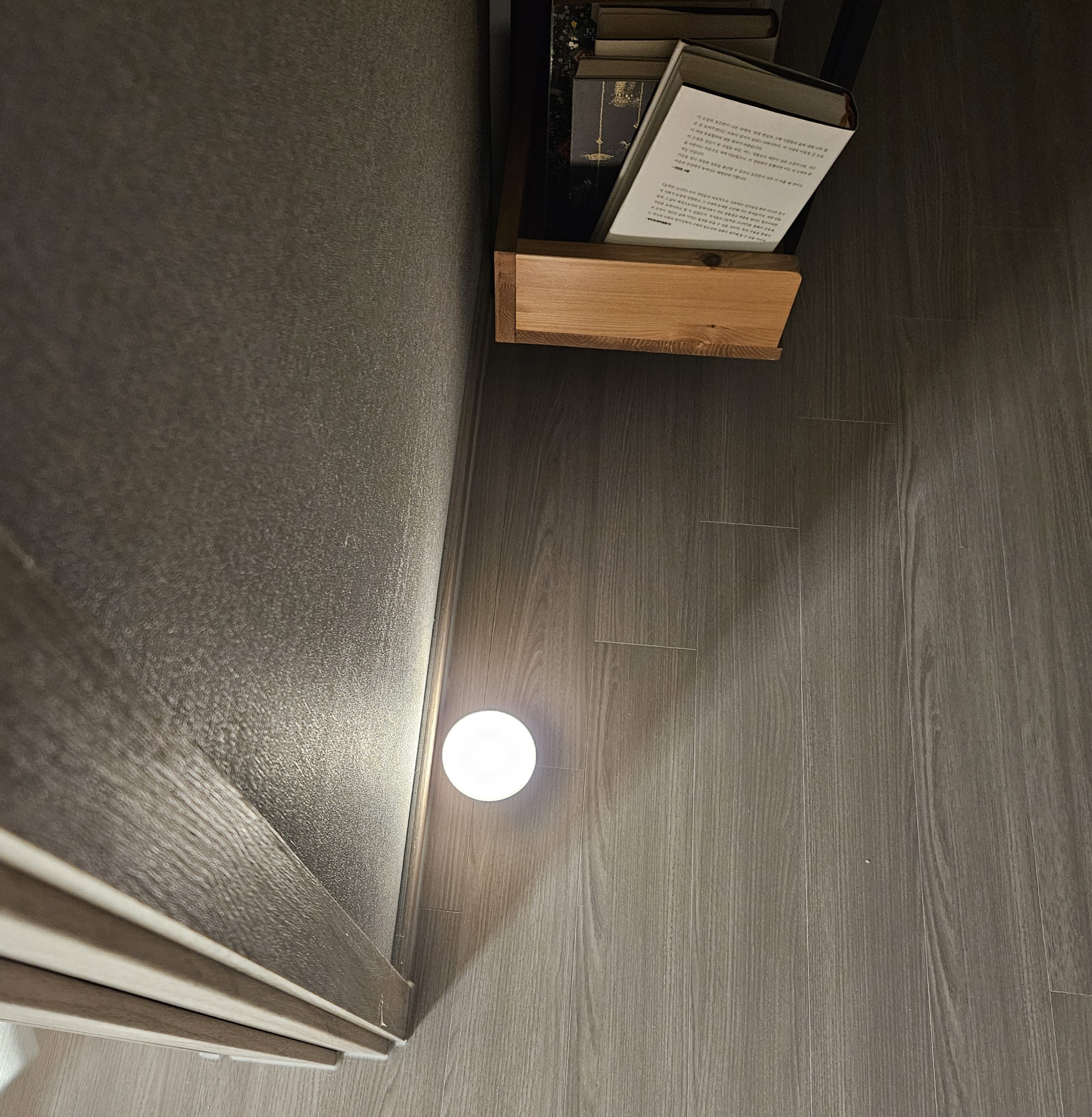 잘 작동되나 확인차 어두운 곳에 두고 사용해 보았습니다. 처음엔 잘 안 되는 것 같더니 몇 번 왔다갔다하니깐 잘 작동하더라고요. 제가 다가가면 은은한 불빛이 나오고 약 10초 뒤에 불이 꺼지는데 편리하고 좋았습니다.