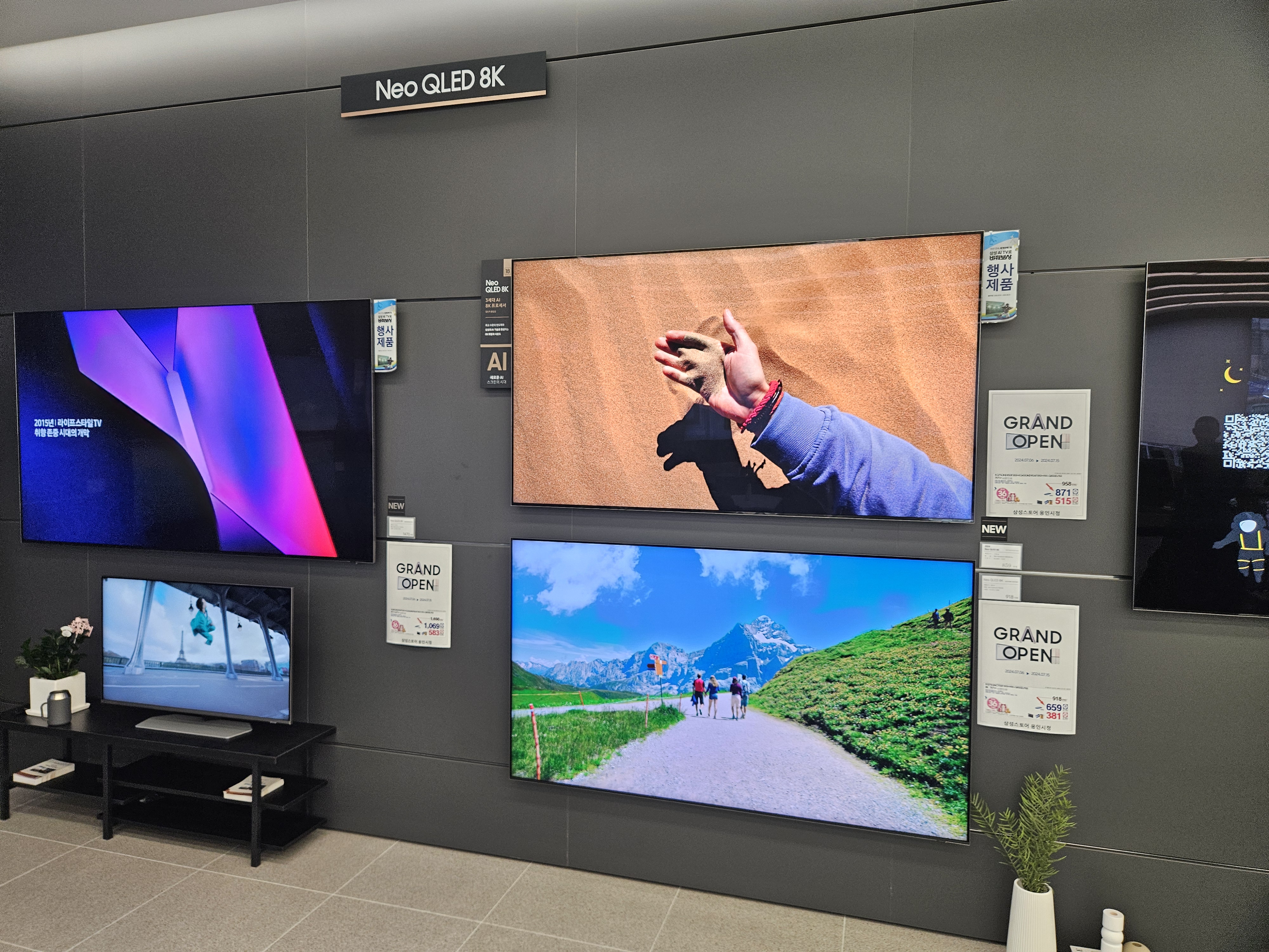 그렇게 2층에 올라가 상담받기 전 구매하고자 했던 제품을 TV부터 쭉 구경을 했는데요. 오픈점에 폴더폰 신제품까지 출시해서 그런지 손님이 엄청 많더라고요. 손님이 붐비는 곳이 맛집이라는 소문이 있듯이 가전도 저렴하게 구매할 수 있지 않을까라는 기대가 되었답니다.
