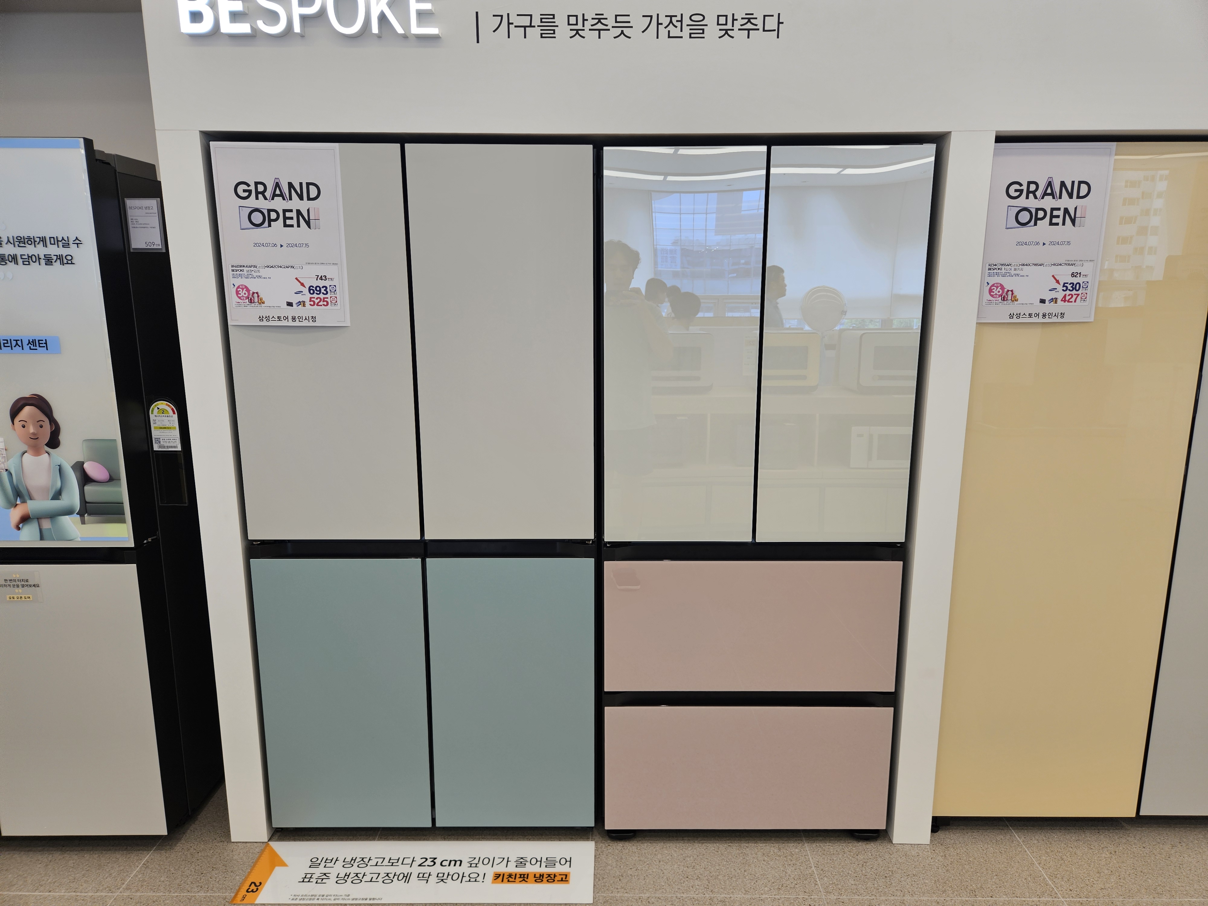 역시 삼성 하면 비스포크 냉장고!! 나중에 집 장만하게 되면 와이프가 냉장고는 키친핏으로 깔끔하게 꾸미고 싶다고 했는데 실제로 보니 용량은 적지만 냉장고 장에 딱 들어가고 깔끔한 게 남자인 제가 봐도 마음에 들더라고요.