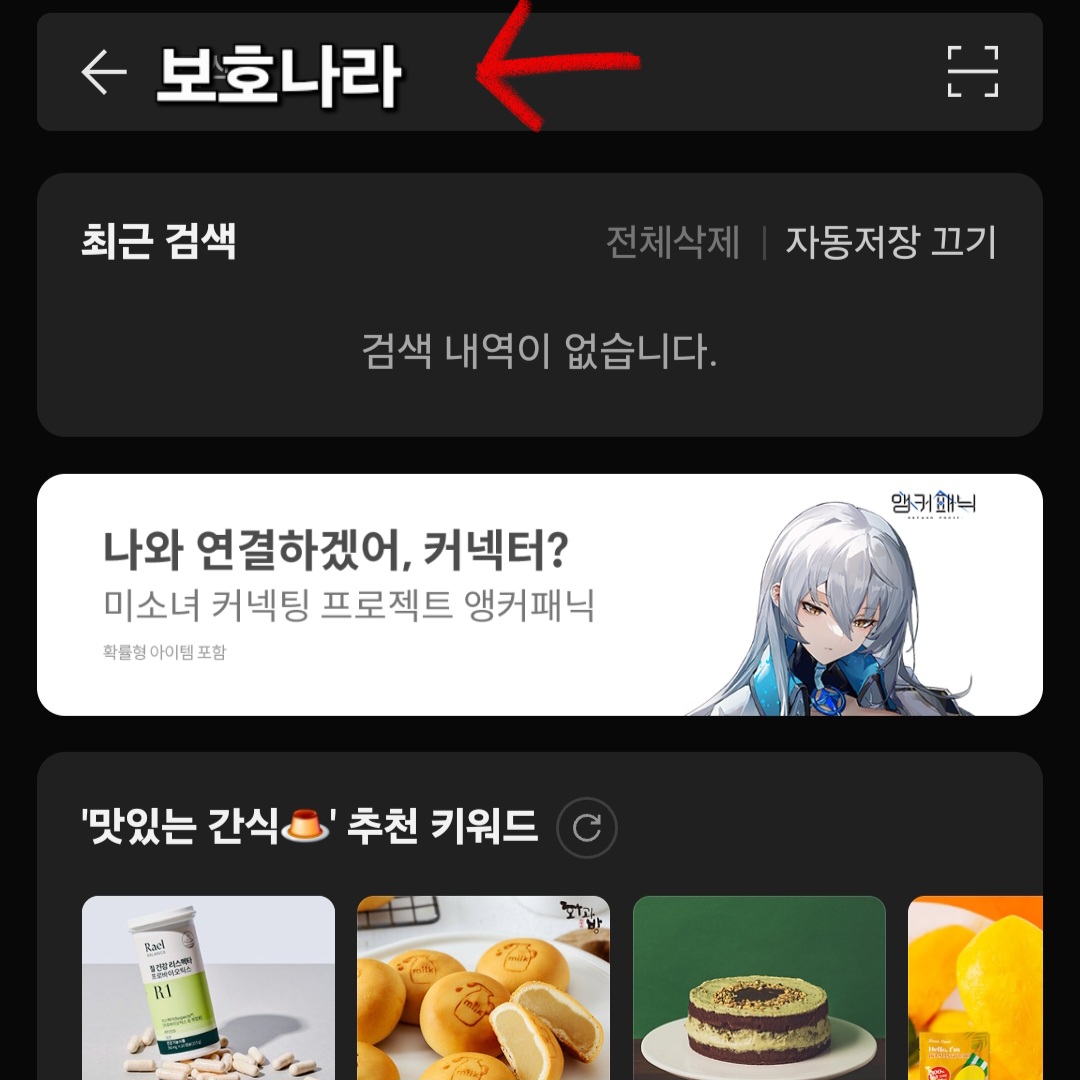 ▼우선 카카오톡을 실행 후 상단[돋보기 모양]을 클릭해주세요. 그다음 검색창에 [보호나라]라고 검색해줍니다.