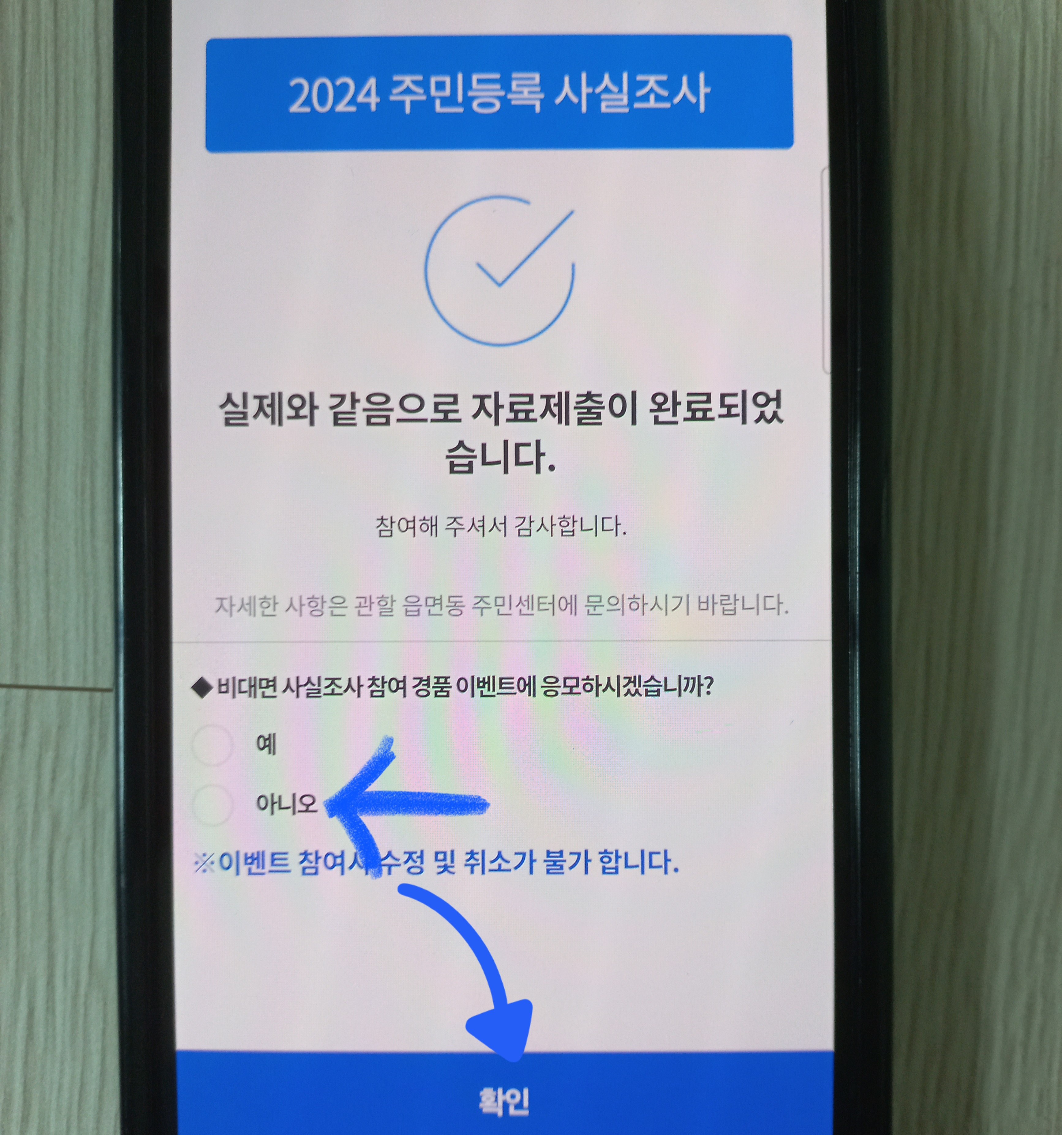 경품 이벤트 기간은 오는 8월 16일까지 진행한다고 하니 많은 참여하시길 바라며, 8월 26일까지 비대면 사실조사를 안 한 분들 대상으로 방문 조사를 할 계획이라고 하니 꼭 참여하시길 바랍니다. 감사합니다.