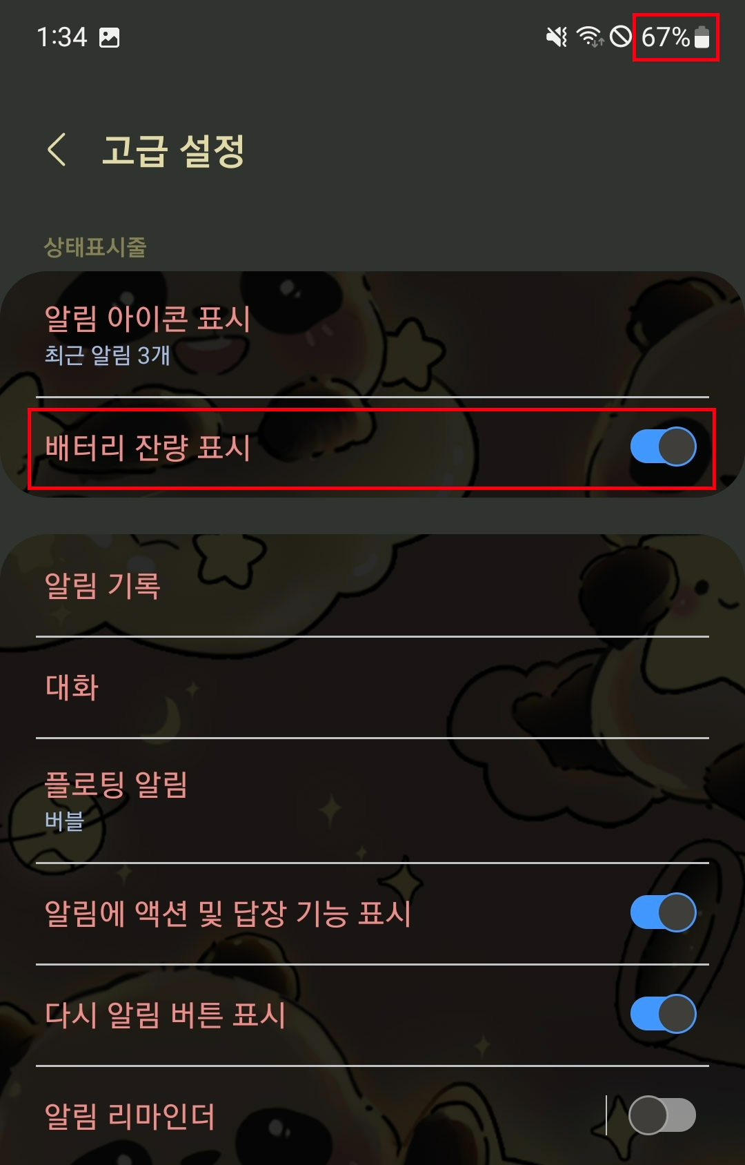 갤럭시 기기 배터리 잔량 표시 설정하는 방법