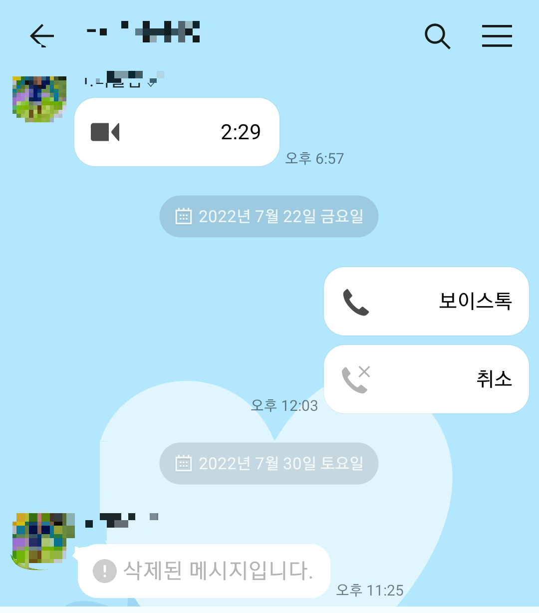 카카오톡 채팅 기능 중 메시지를 실수로 보냈을 때 상대방이 아직 글을 읽지 않았다면 보냈던 메시지를 삭제하는 기능이 있죠. 하지만 보낸 메시지가 아무 흔적 없이 지워지는 게 아니고 "삭제된 메시지입니다"라는 문구가 남게 됩니다. 물론 삭제된 메시지를 받은 사람들 중 "그냥 잘못 보냈나 보구나"라고 넘어갈 수도 있겠지만 반대로 "도대체 뭐라고 보냈길래 메시지를 삭제했을까?"라는 궁금증이 생기는 분들도 있을 수 있습니다. 그래서 이러한 삭제된 메시지 확인하고 싶어 하는 분들을 위해 이번 포스팅을 준비해 보았습니다.