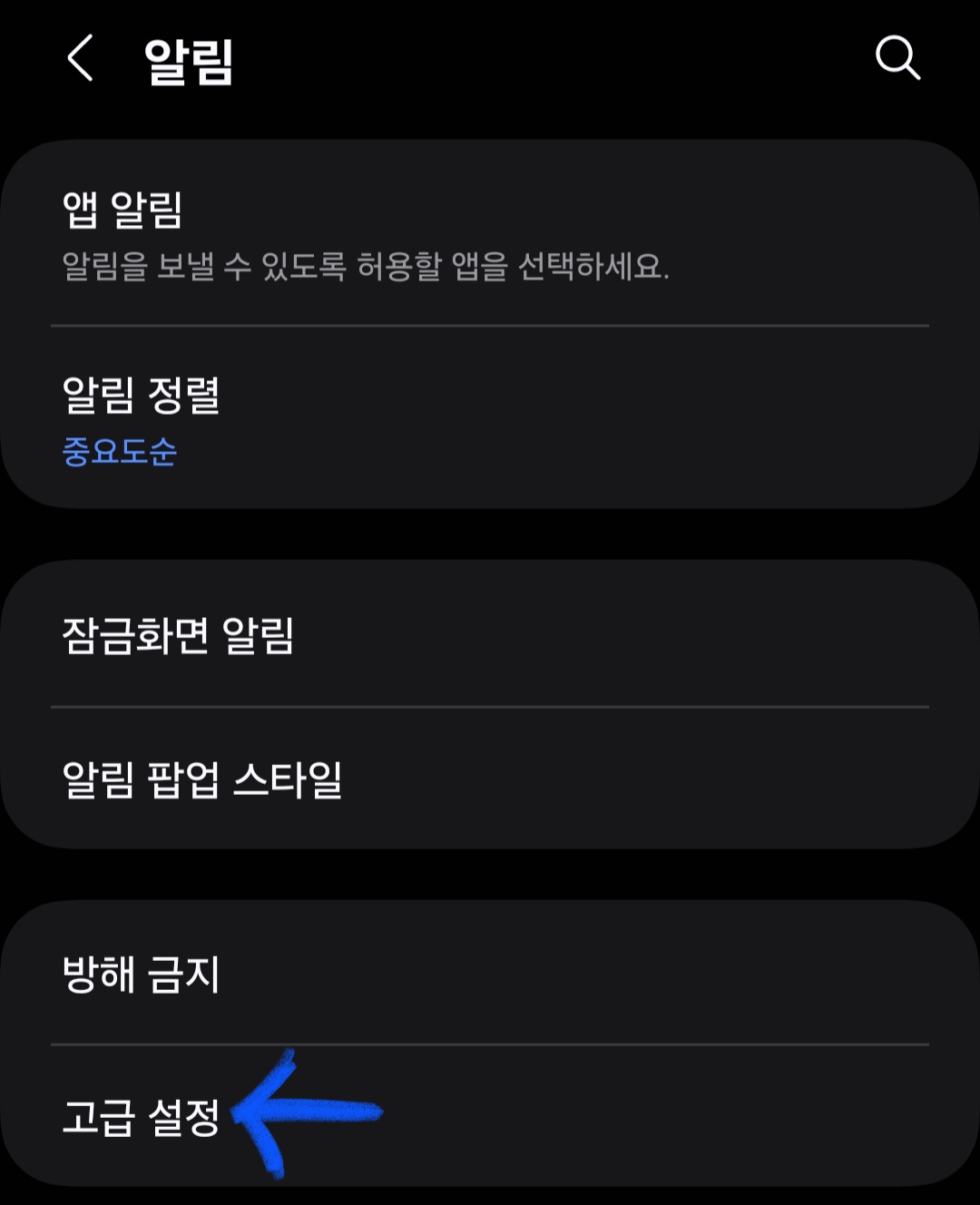 ▼그다음 [고급 설정]을 클릭 후 [알림 기록]을 클릭해 줍니다.