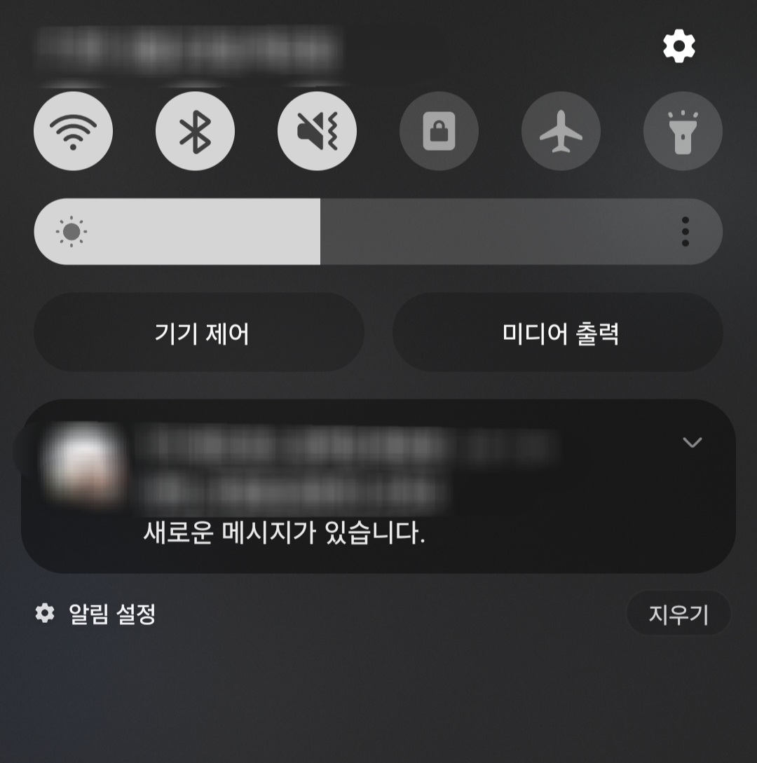 ▼우선 [빠른 설정창]을 실행 후 [설정]에 들어가 [알림]을 클릭해 줍니다.