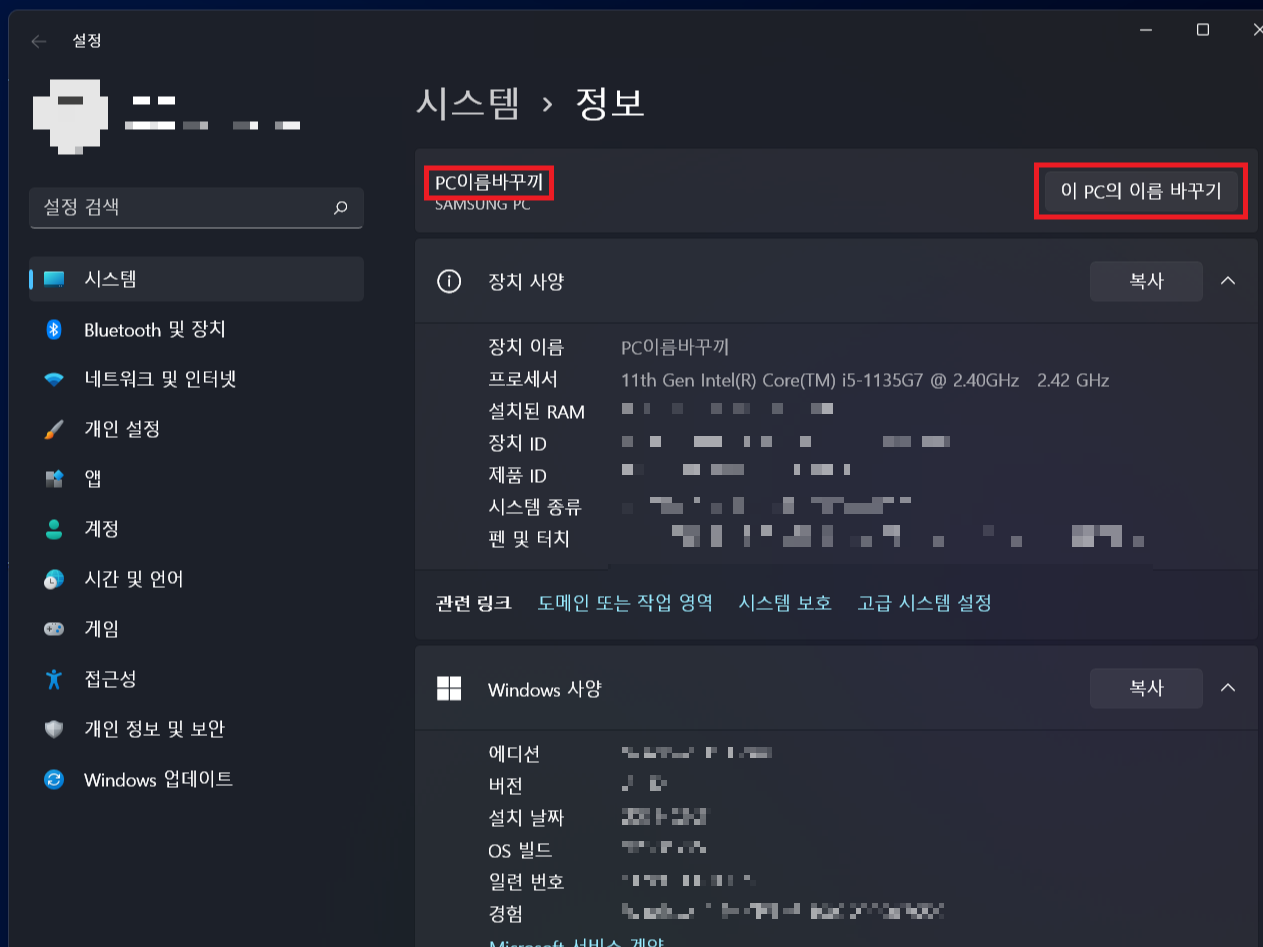컴퓨터 PC 이름 바꾸는 방법 두 번째