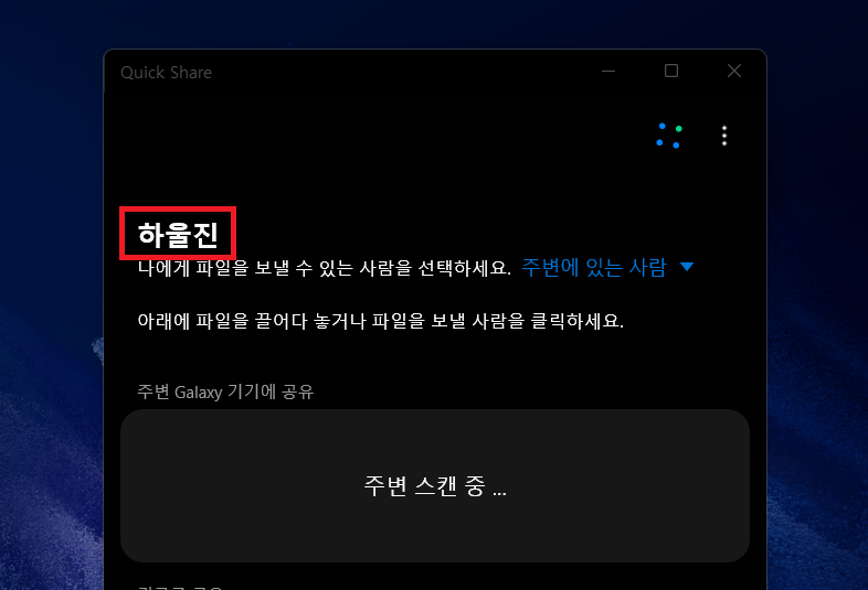 삼성 갤럭시 노트북, 갤럭시탭 파일 무선 공유 (삼성 퀵쉐어 Quick Share 무선 공유)