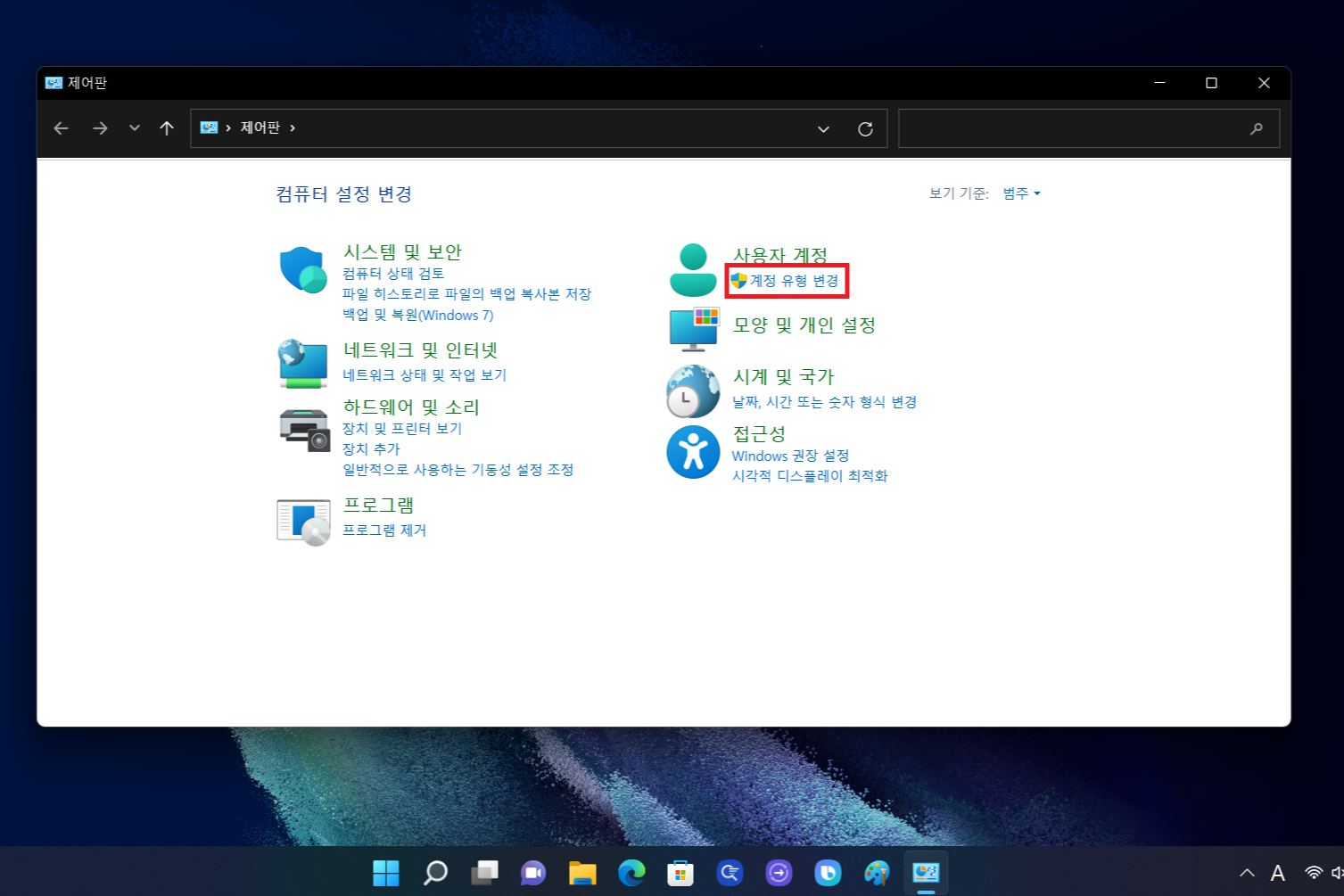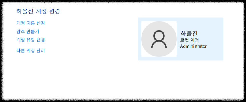 ▼그다음 사용자 계정 바로 밑에 있는 [계정 유형 변경]을 클릭해줍니다.