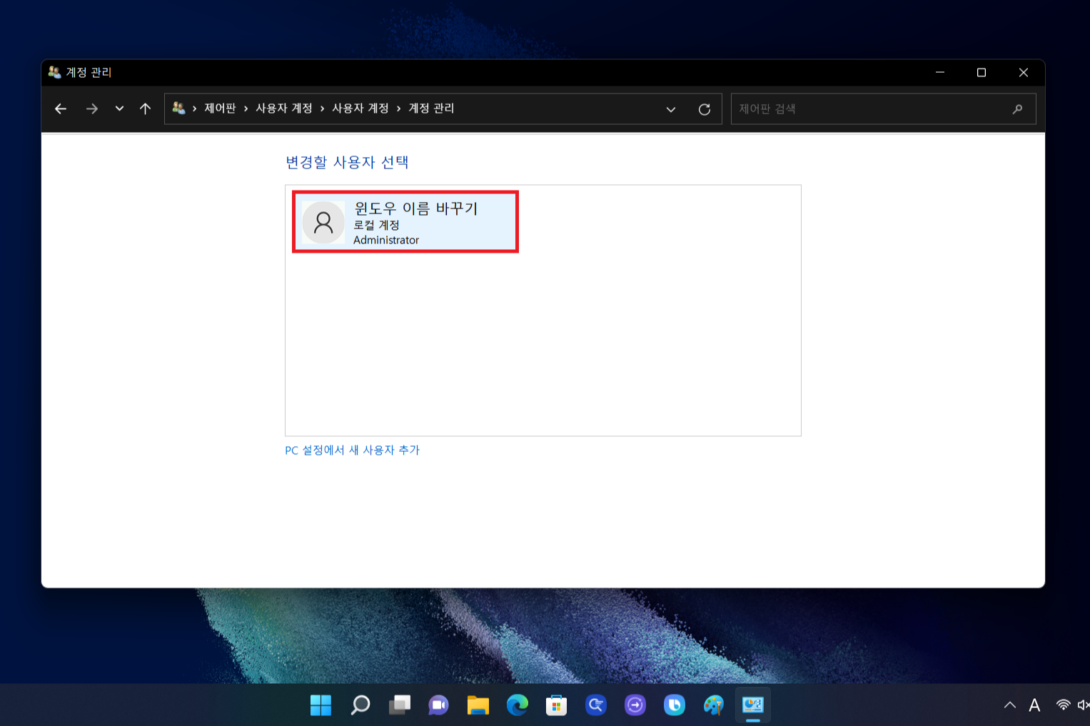 윈도우 사용자 계정 이름 변경하기 (로그인할 때 계정 이름 변경)