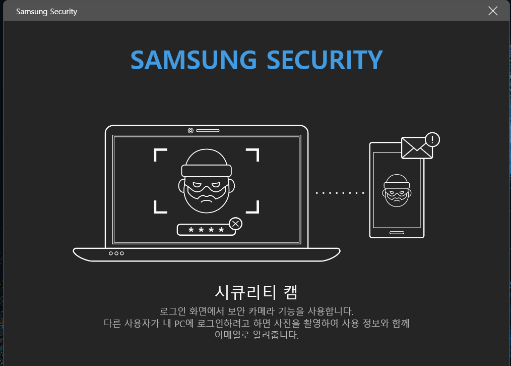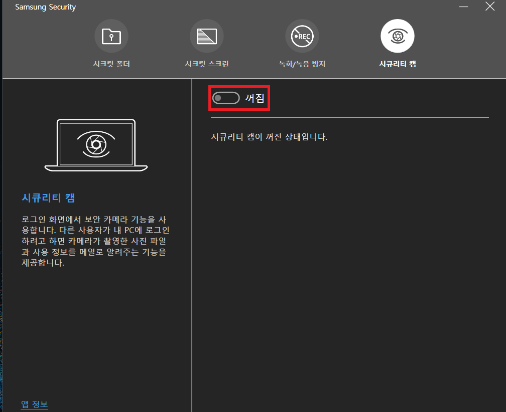 삼성 노트북 시큐리티 앱 기능 - 시큐리티 캠 기능 활성화하는 방법