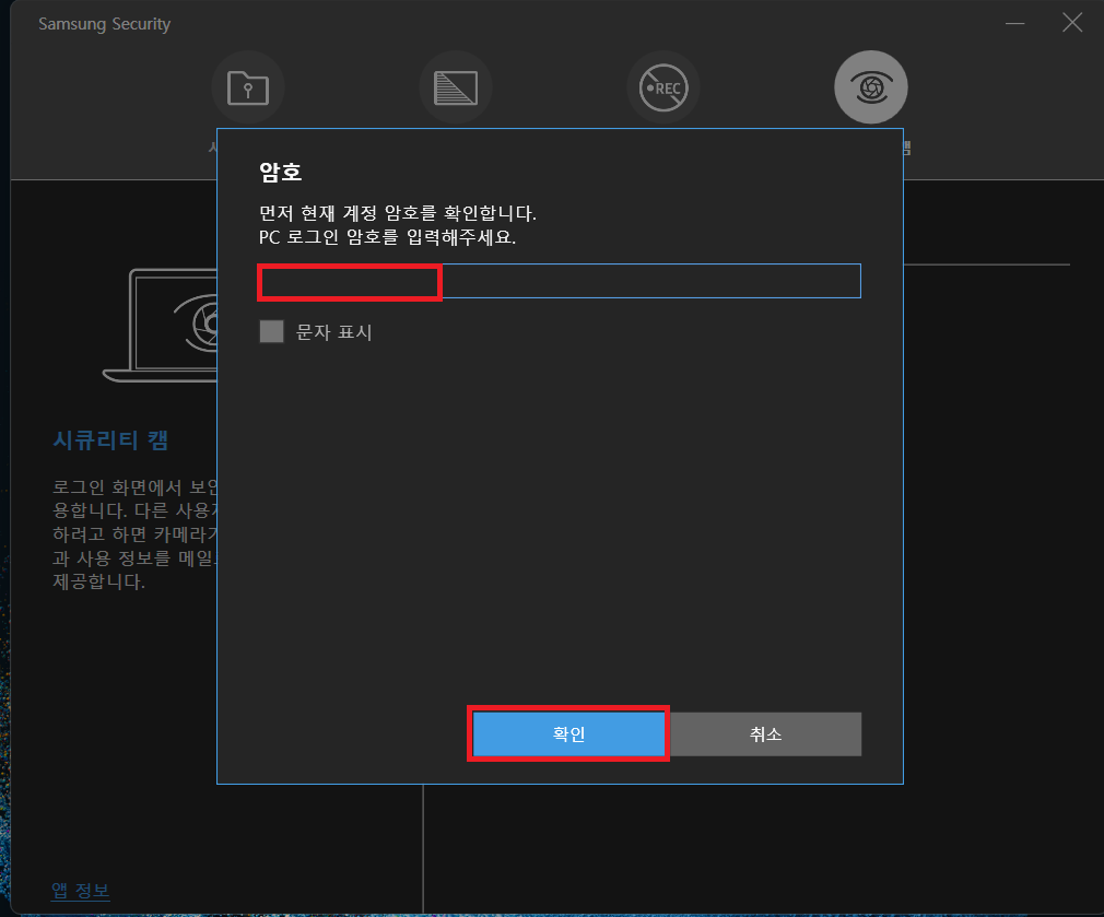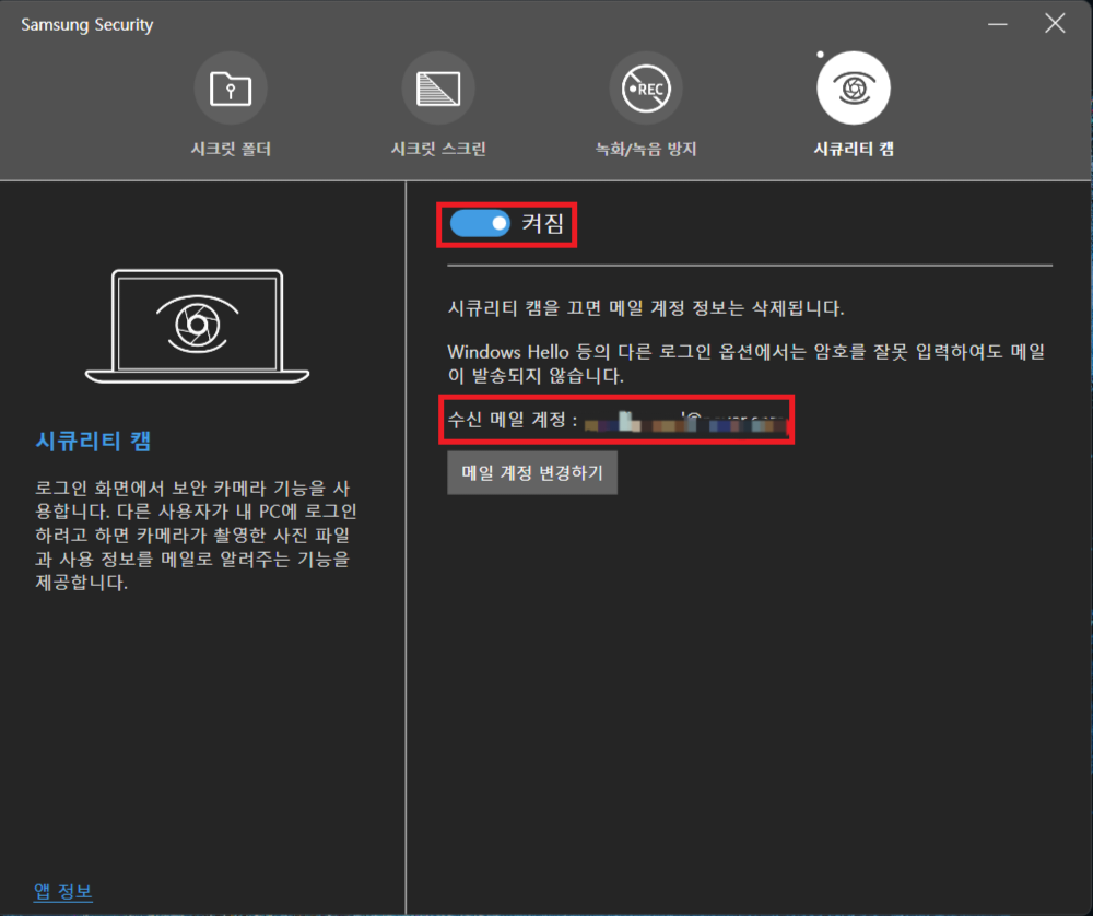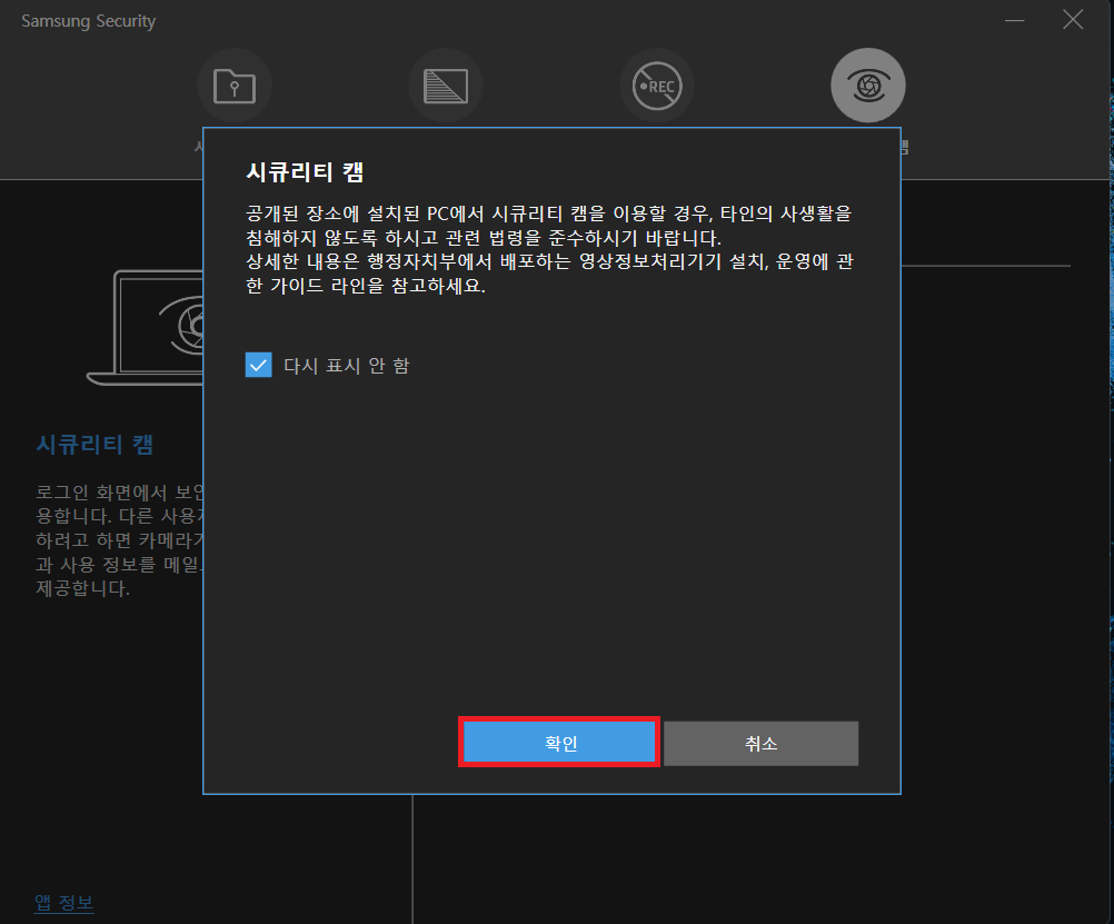 삼성 노트북 시큐리티 앱 기능 - 시큐리티 캠 기능 활성화하는 방법