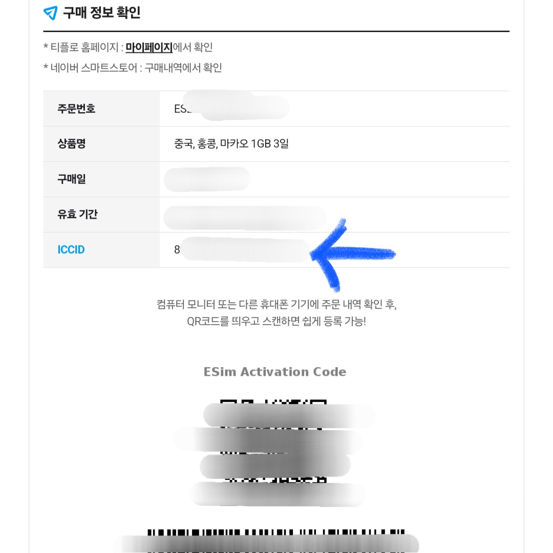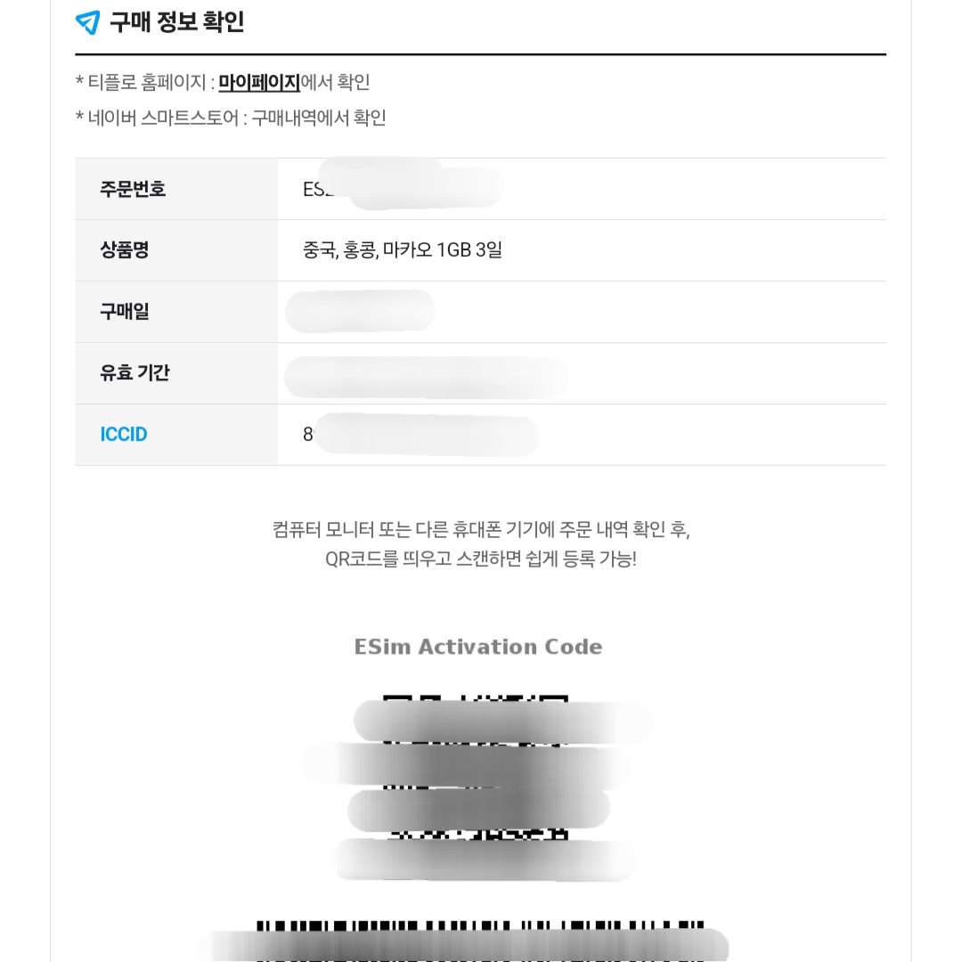 ▼해당 해외데이터로밍을 구매하면 3-5분 뒤 티플로에서 이메일을 보내주는데요.