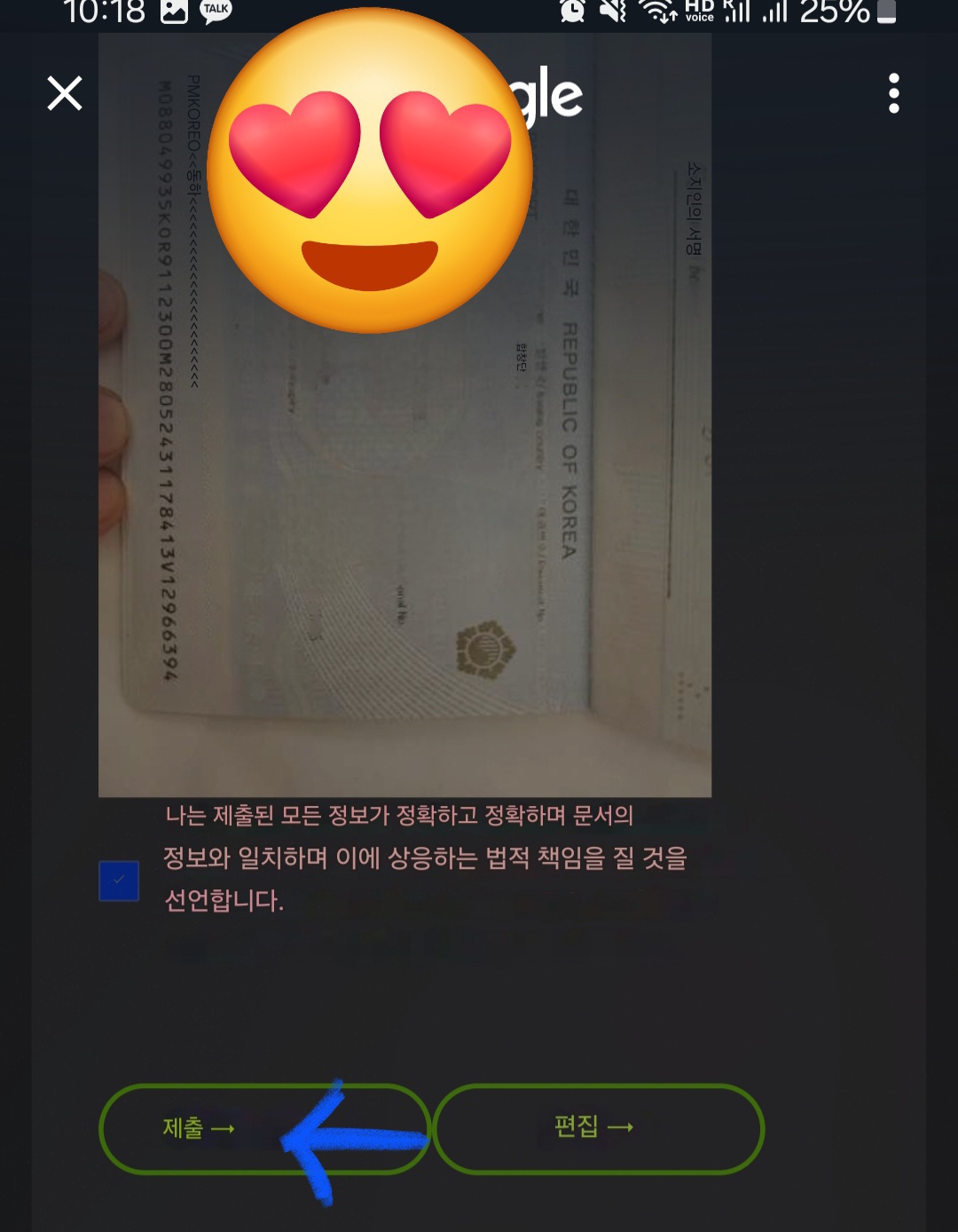 ▼마지막으로 본인 인증을 위해 [여권]을 클릭하고 체크란에 체크를 해줍니다. 그리고 마지막으로 [서류 이미지를 업로드해 주세요.]를 클릭 후 [여권사진]을 찍어 이쁘게 전송하기만 하면 끝!! 그럼 본인 인증과 함께 해외데이터로밍을 사용하실 수 있습니다.