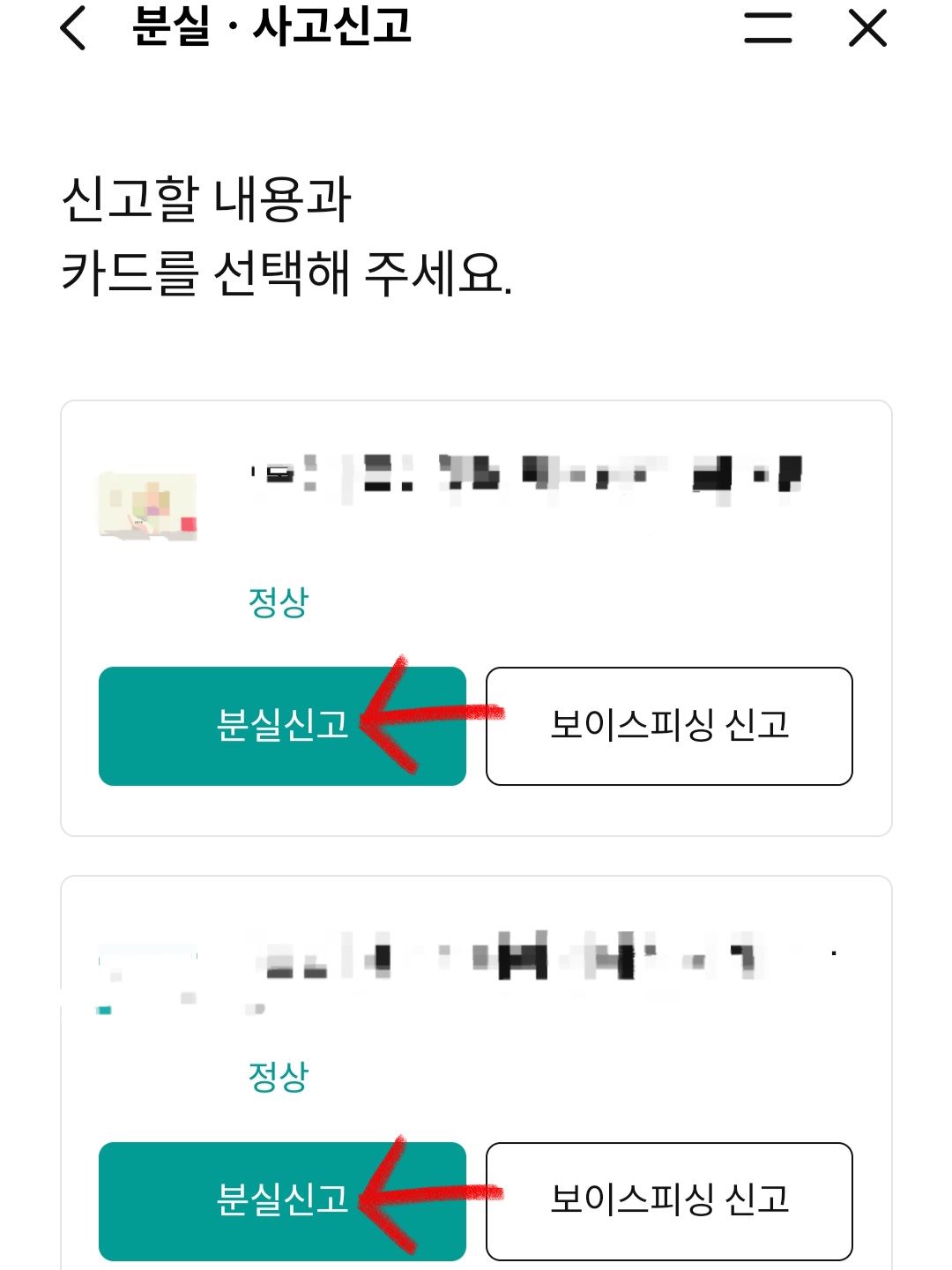 ▼그다음 스크롤을 내려 [분실•사고 신고]를 클릭하면 현재 사용 중인 하나신용카드나 체크카드가 뜨는 걸 확인할 수 있는데요. 그중 분실한 하나카드를 [분실 신고]해주면 됩니다.