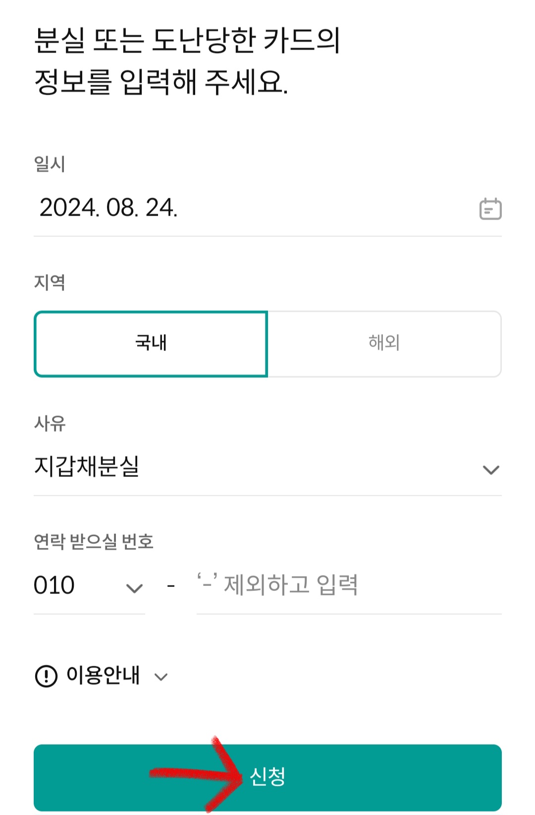 ▼그다음 간단한 개인정보를 입력하면 하나카드 분실 신고가 되는데요. 어떤가요?? 간단하죠??