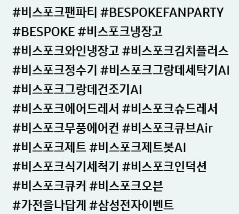 첫 번째로 행사 참여 방법으로 앞서 말씀드린 거처럼 사용 중인 비스포크 제품 사진이나, 비스포크 광고 혹은 비스포크 제품 이미지를 캡처해서 해시태그와 함께 본인 SNS에 공유하기만 하면 됩니다.