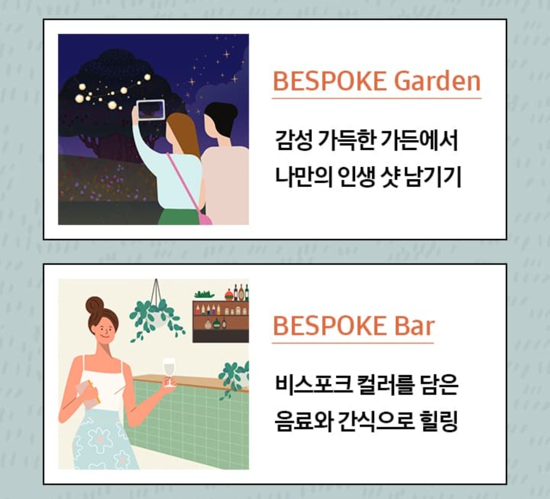 취향 있는 비스포크 팬들을 위한 썸머 바캉스, 비스포크 팬 파티를 진행한다고 합니다. 이 행사는 사용 중인 비스포크 제품 사진이나 비스포크 광고 혹은 비스포크 제품 이미지 을 찍고 본인의 SNS에 공유하기만 하면 되는 이벤트라고 하는데 한번 알아보도록 하겠습니다.