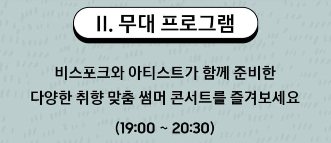 첫 번째 행사로 컬처 프로그램입니다. 컬처 행사 시간은 오후 14시부터 19시까지 진행하고 총 4종류에 프로그램과 이벤트를 한다고 합니다.