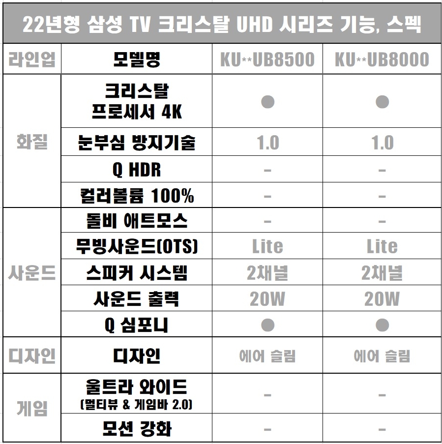 22년형 크리스털 UHD 시리즈 기능, 스펙 알아보기