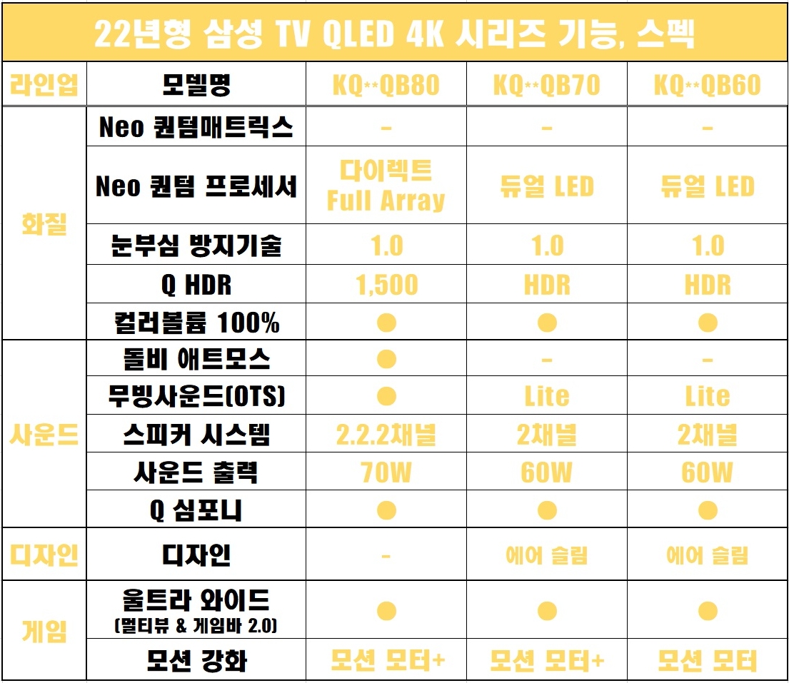 22년형 삼성 QLED 4K 시리즈 기능, 스펙 알아보기