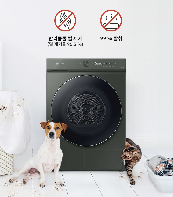2022 비스포크 건조기에도 AI 펫케어 코스가 새롭게 탑재되어 출시했습니다. AI 펫케어 코스는 기존 표준 코스보다 양방향 회전 구간이나 헹굼, 건조시간, 고온 유지를 강화해 털 제거, 탈취를 해주는 기능입니다.