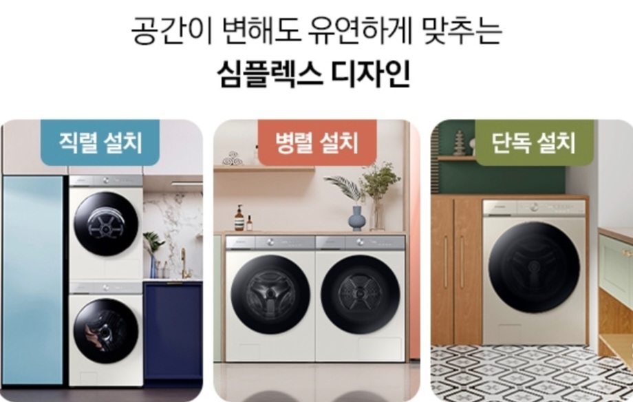 만약 직렬 설치가 안된다고 해도 병렬 설치 혹은 단독 설치까지 가능하기 때문에 설치 환경에 대한 걱정을 줄어줍니다. 지금까지 새롭게 출시한 비스포크 세탁기 25Kg 건조기 20Kg에 대해 알아보았습니다. 감사합니다.