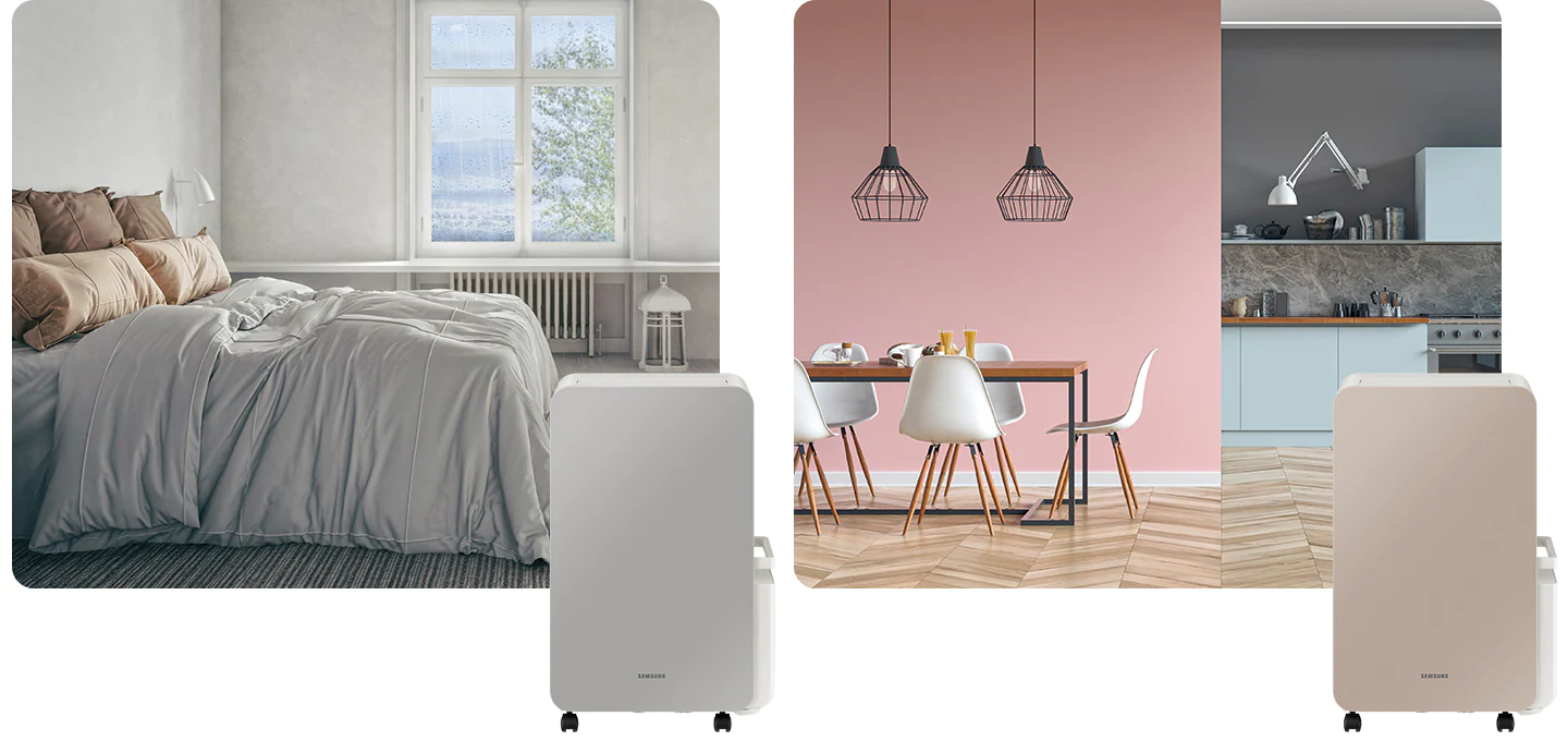 2022 삼성 인버터 제습기 색상은 그레이, 베이지 두 가지 색상으로 출시를 하였고 어디에도 잘 어울리는 심플한 매트 플랫 디자인과 A3 한 장의 크기에 컴팩트한 사이즈로 공간을 덜 차지해 삼성 인버터 제습기를 사용 안 할 시 보관하기에도 편리하게 출시했습니다.