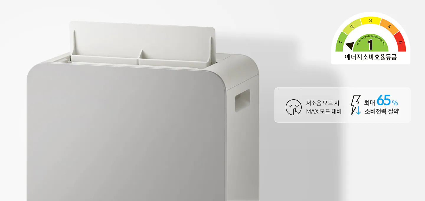 2022 삼성 제습기 역시 인버터 형식으로 에너지 소비효율 1등급으로 출시하여 장마철에 하루 종일 제습기를 틀어도 전기요금 걱정을 덜어드리고 Max 제습 모드 대비 저소음 모드로 삼성 인버터 제습기를 사용하게 되면 최대 65%나 소비전력을 절약해주는 인버터 제습기입니다.