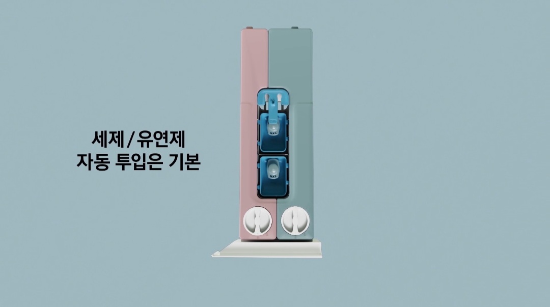 거기에 세제와 유연제를 가득 채워 놓으면 최대 4주 동안 옷감 무게를 감지하여 정량의 세제와 유연제를 자동으로 넣어주고, 세탁 오염도가 낮으면 세제량도 자동으로 줄여서 투입을 해 더욱 똑똑해졌다고 합니다.
