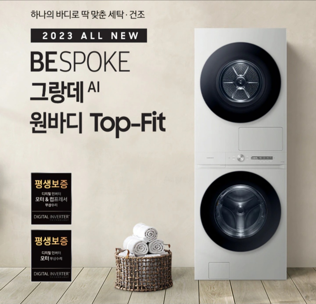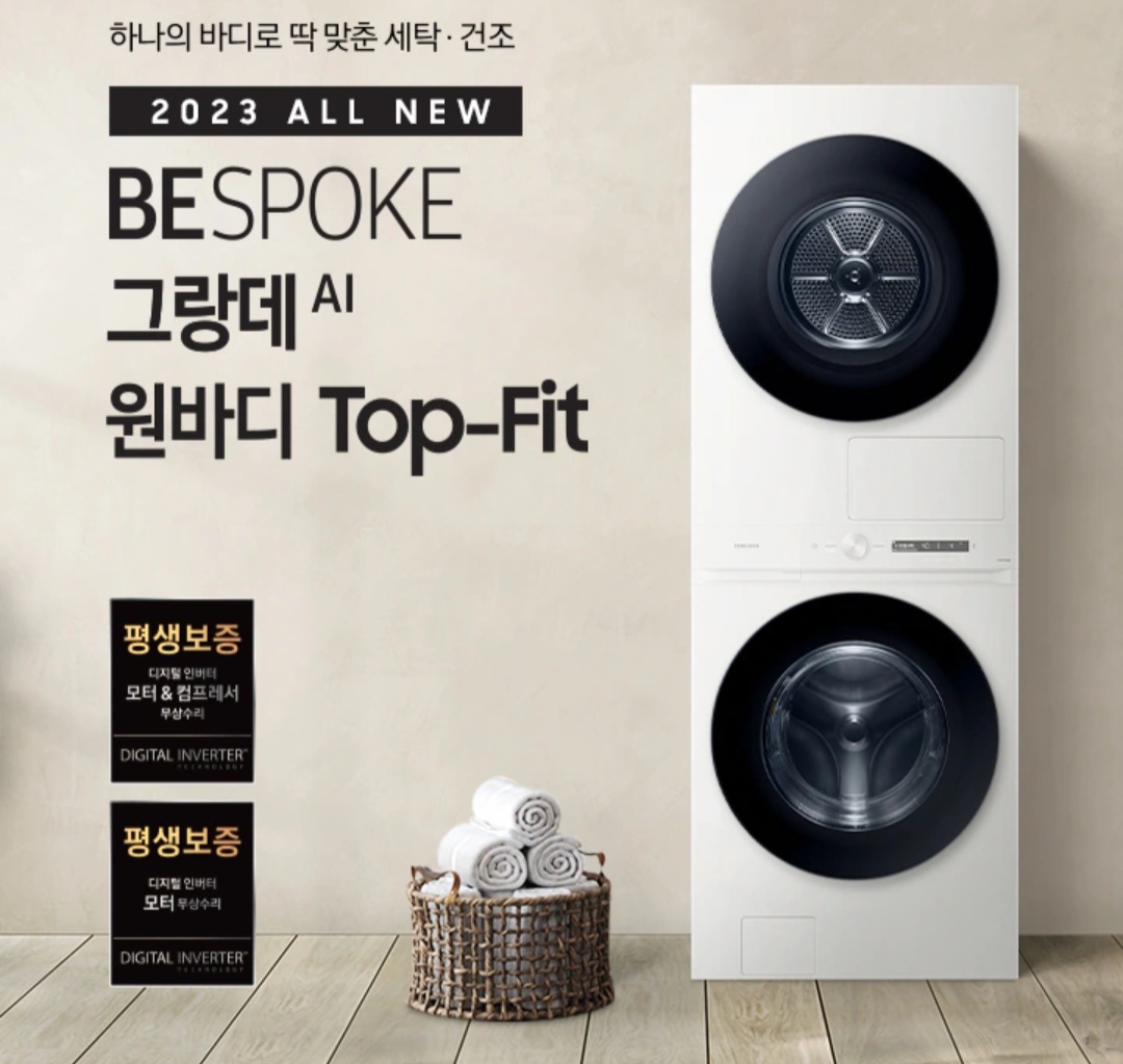삼성전자에서도 드디어 세탁기 건조기가 완벽한 조화를 이룬 일체형 모델이 나왔습니다. 일명 2023 비스포크 그랑데 AI 원바디 Top-Fit이라는 명칭으로 출시를 했는데요. 과연 비스포크 그랑데 AI 원바디 Top-Fit 신제품은 어떤 점이 좋은지 간단하게 알아보도록 하겠습니다.