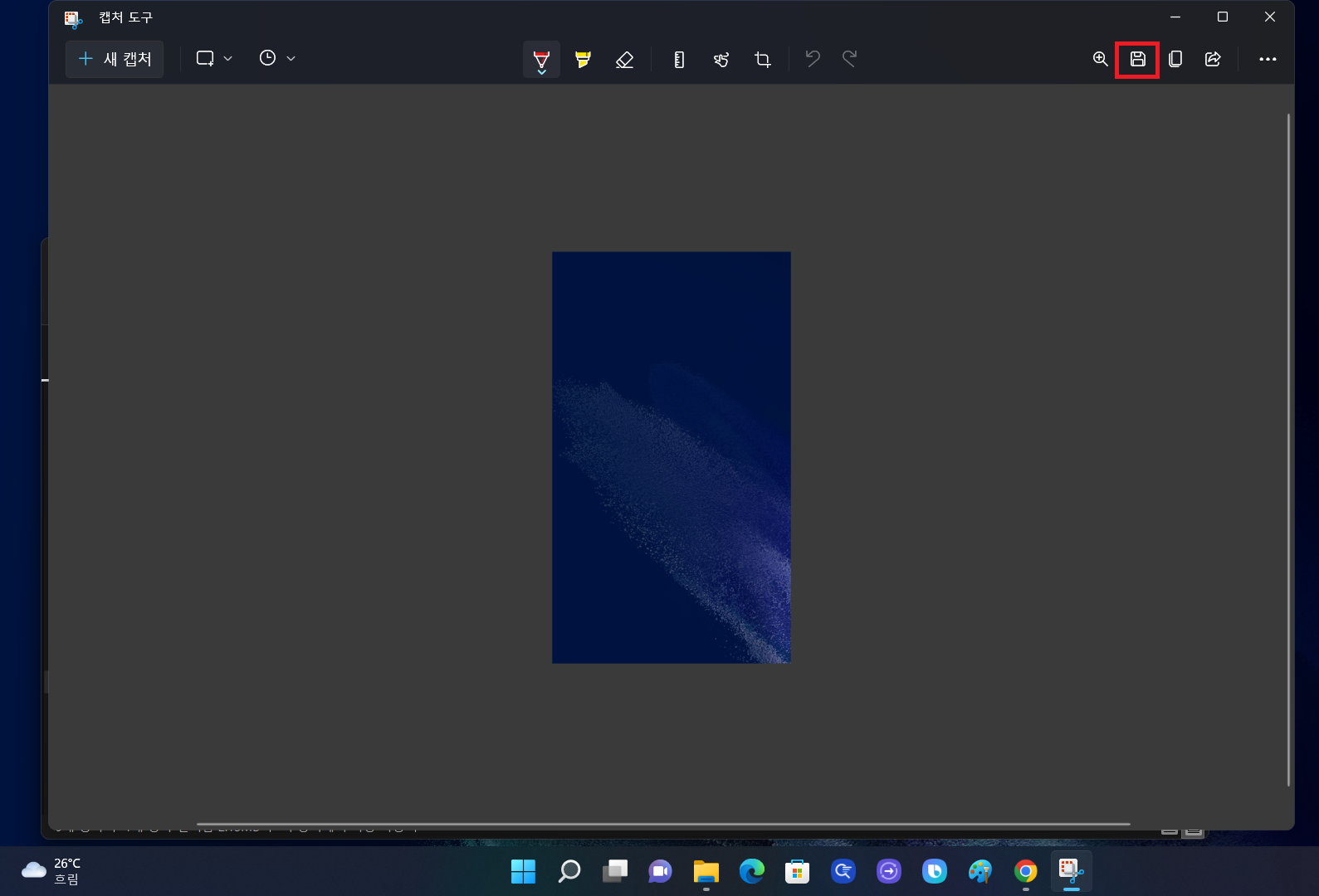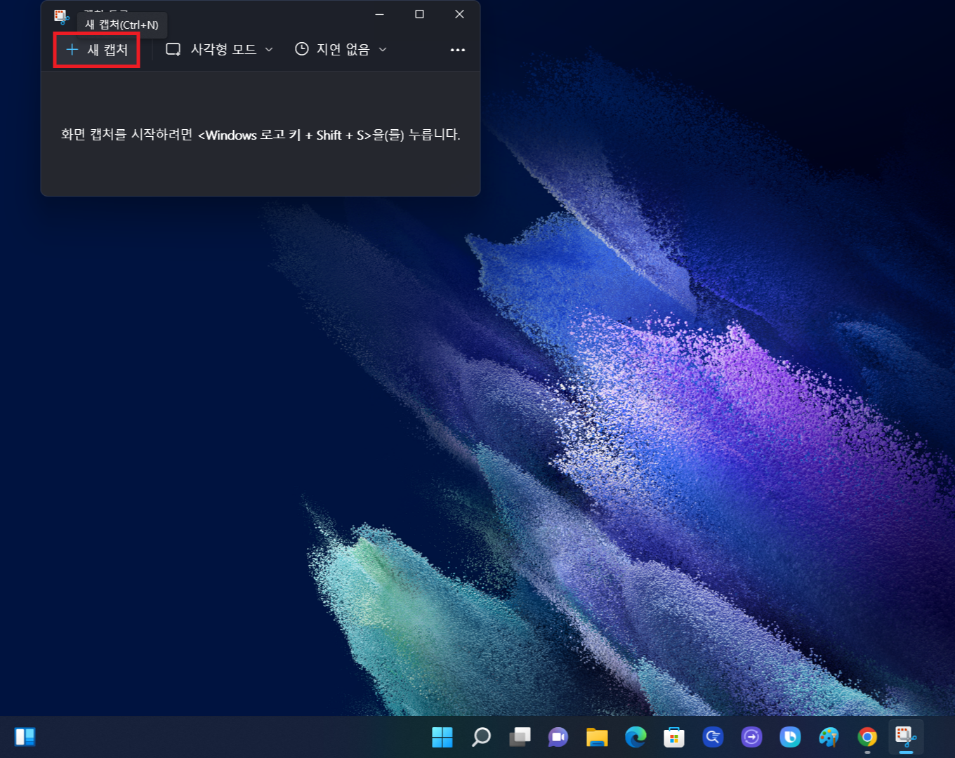 ▼그럼 윈도우 화면 상단에 캡쳐 도구 앱이 뜨게 되고 거기서 [+새캡쳐]를 클릭 후 캡쳐하고 싶은 화면을 마우스로 드래그해줍니다.