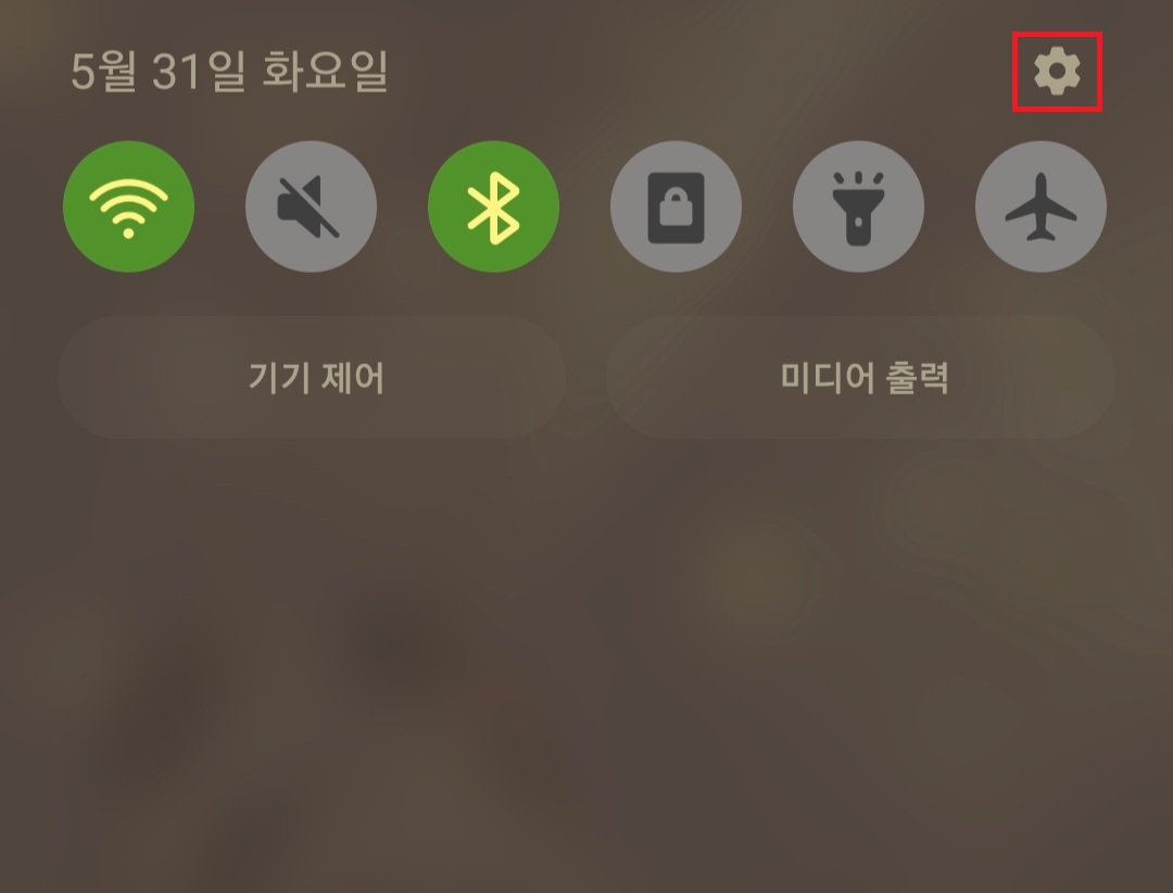 와이파이가 등록된 스마트폰으로 퀵패널을 활성화하고 상단 오른쪽에 톱니바퀴모양의 설정을 클릭해줍니다.