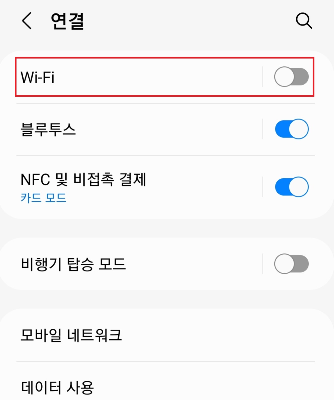 설정에 들어간 다음 연결을 클릭해주시고 Wi-Fi를 클릭해줍니다.