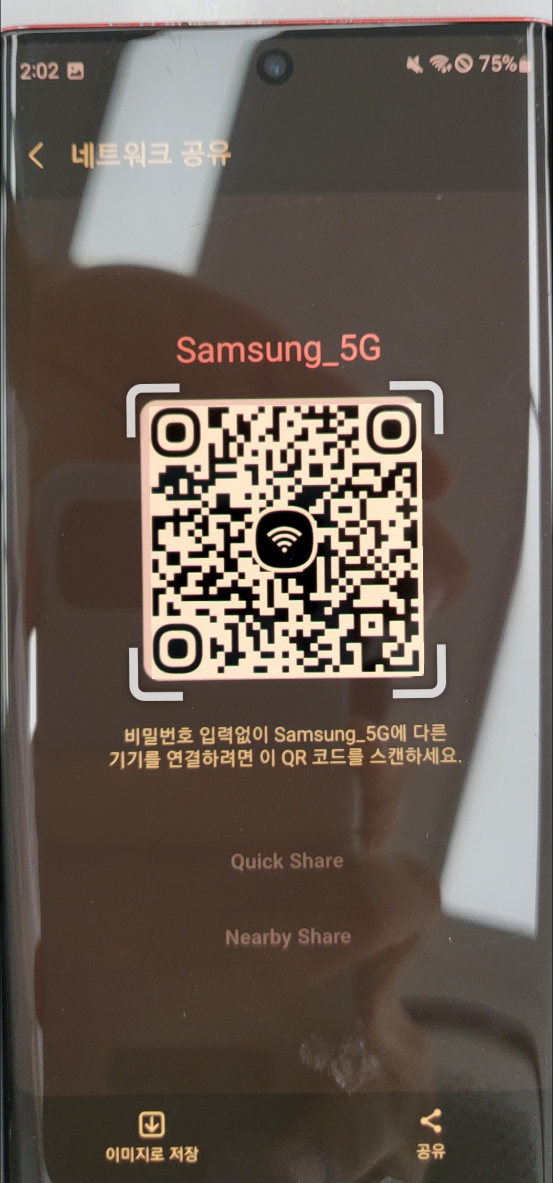 그럼 네트워크 공유 형태에 QR코드가 완성이 되면 설정이 끝나게 되고 다른 기기로 스캔만 해주면 됩니다.
