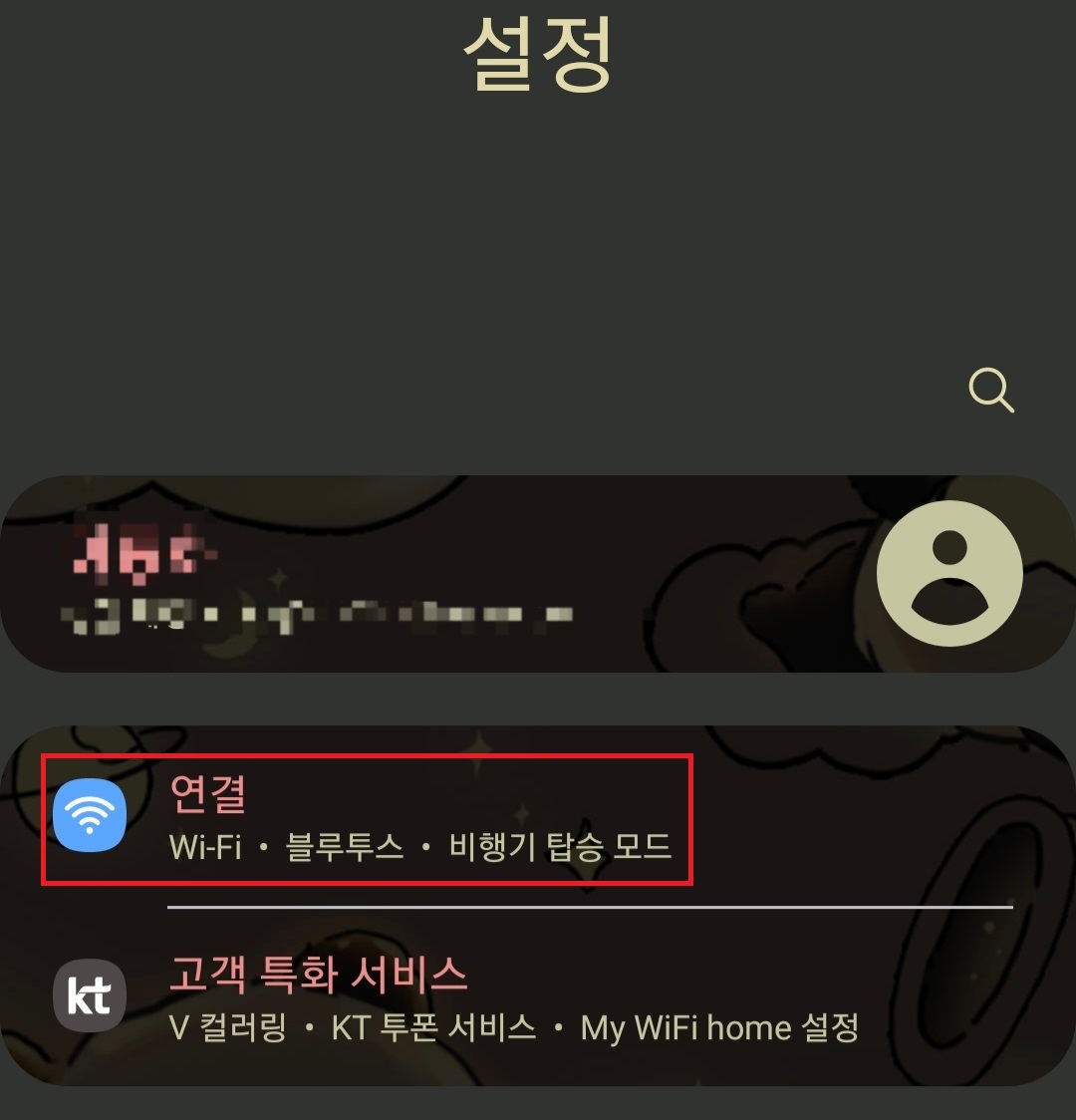 설정에 들어간 다음 연결을 클릭해주시고 Wi-Fi를 클릭해줍니다.