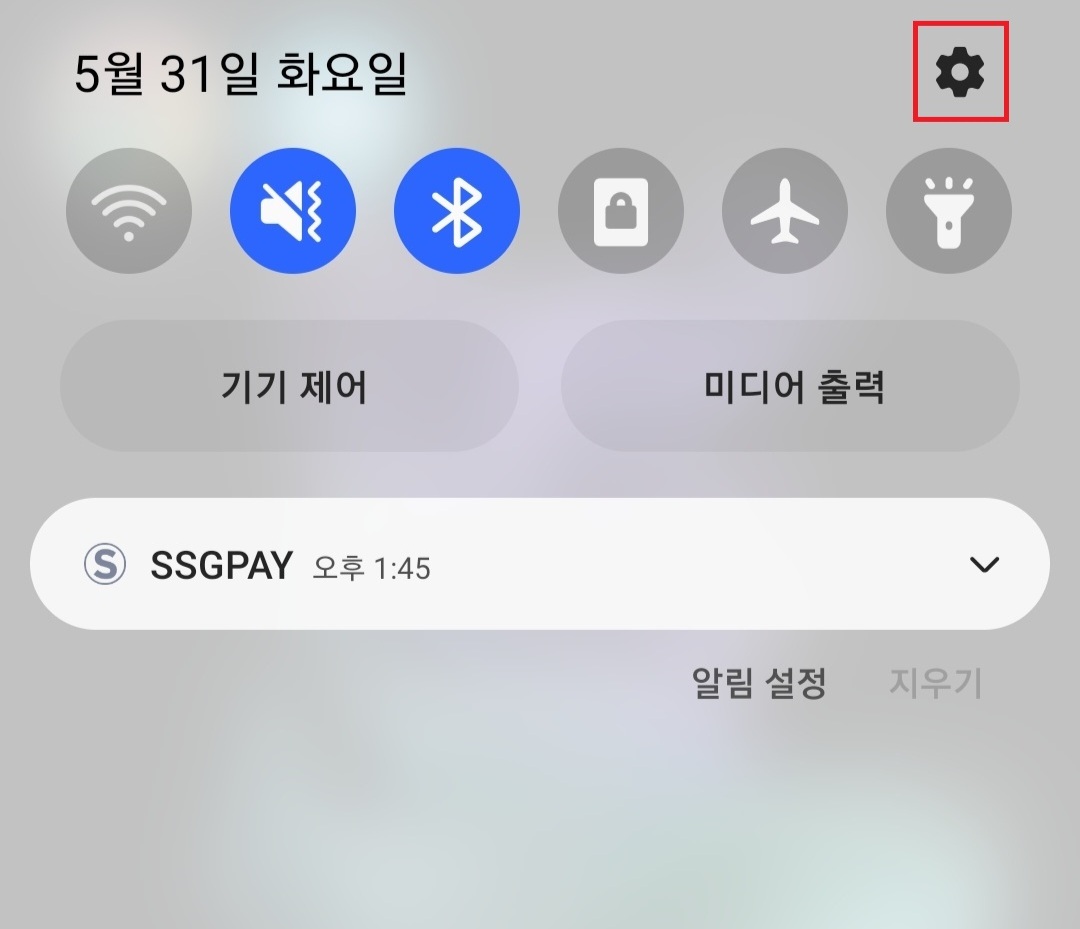 와이파이가 등록된 스마트폰으로 퀵패널을 활성화하고 상단 오른쪽에 톱니바퀴모양의 설정을 클릭해줍니다.